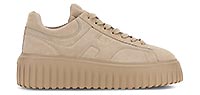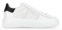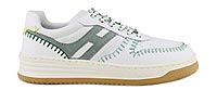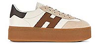 Hogan appartient à cette famille de marques de chaussures italiennes qui rayonnent dans le monde, tout comme sa marque soeur Tod’s. Créée en 1986, la chaussure Hogan se distingue, outre ses détails soignés, par le H emblématique qui apparaît sur ses lignes de sneakers urbaines et chic. Chaque saison, nouveaux designs, mix de superbes matières, couleurs et variations, séduisent les amateurs de la marque, hommes et femmes, à la recherche de chaussures sportives et stylées, à la fois raffinées et décontractées. La signature unique de Hogan se retrouve aussi avec ses lignes de chaussures tendance : Interactive, Interaction, Active One, Maxi Active, Urban Trek, H222, H357, H321, H383… Autant de projets stylistiques que d’options et de looks à associer à son propre « lifestyle ». Pointure et chaussant : La marque italienne Hogan chausse grand. Nous vous conseillons de prendre une demi-pointure de moins que votre pointure française habituelle.“