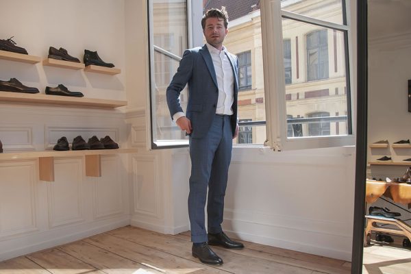 ALEX, a plain fronted whole-cut shoe made on last 348 from the finest calf leather, featuring single leather outsoles.
