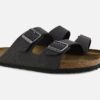BIRKENSTOCK, ce nom vous est probablement familier et pour cause, cette marque allemande de sandales fait partie des plus connues et des plus vendues dans le monde! Chaque saison, femmes, hommes et enfants sortent leurs Birkenstock… et pas seulement pour les beaux jours ! Ces formidables sandales sont saines, confortables et aussi légères que des chaussons elles se portent aussi bien à l’extérieur qu’à l’intérieur, pour marcher, travailler, jardiner, ou farnienter ! Mais quel est donc le secret des chaussures Birkenstock ? Parlons d’abord du légendaire confort du lit de pied anatomique, sorte de semelle intérieure préformée, qui accueille le pied. Forte de ses plus de 200 ans d’expérience (depuis 1774 !) la marque a su peaufiner au fil du temps cette pièce maîtresse parfaitement bien conçue, depuis sa forme (inspirée de la trace de pas naturellement laissée dans le sable par les pieds), jusqu’à sa composition (liège et latex ultra-légers, anti-microbiens, aux propriétés à mémoire de forme). Un bien-être immédiat, un confort d’excellence, des chaussures légères et ergonomiques, faciles à enfiler et transporter, idéales pour les voyages ou les vacances, ou pour rester à la maison ! Le succès des Birkenstock s’explique aussi par sa multitude de déclinaisons : en version une bride (MADRID), deux brides (ARIZONA), tong (GIZEH) et autres variantes (MAYARI ou SIENA) jouant sur les matières et les couleurs. Partout dans le monde des générations de femmes, hommes et enfants, fans inconditionnels et aficionados, fashion victims et néophytes portent les authentiques Birkenstock, souvent imitées, jamais égalées. Marque éco-responsable depuis maintenant près de 30 ans, Birkenstock s’engage sérieusement pour l’avenir de notre planète. La plupart des matières premières utilisées dans la fabrication des chaussures proviennent de sources naturelles durables : liège, latex naturel, jute, cuir… même les colles utilisées sont écologiques ! Alors, qu’attendez-vous pour rejoindre le fan-club des chaussures Birkenstock ? Pointure et chaussant : La marque allemande Birkenstock chausse plutôt grand. Nous vous conseillons de choisir une taille en dessous de votre pointure habituelle.