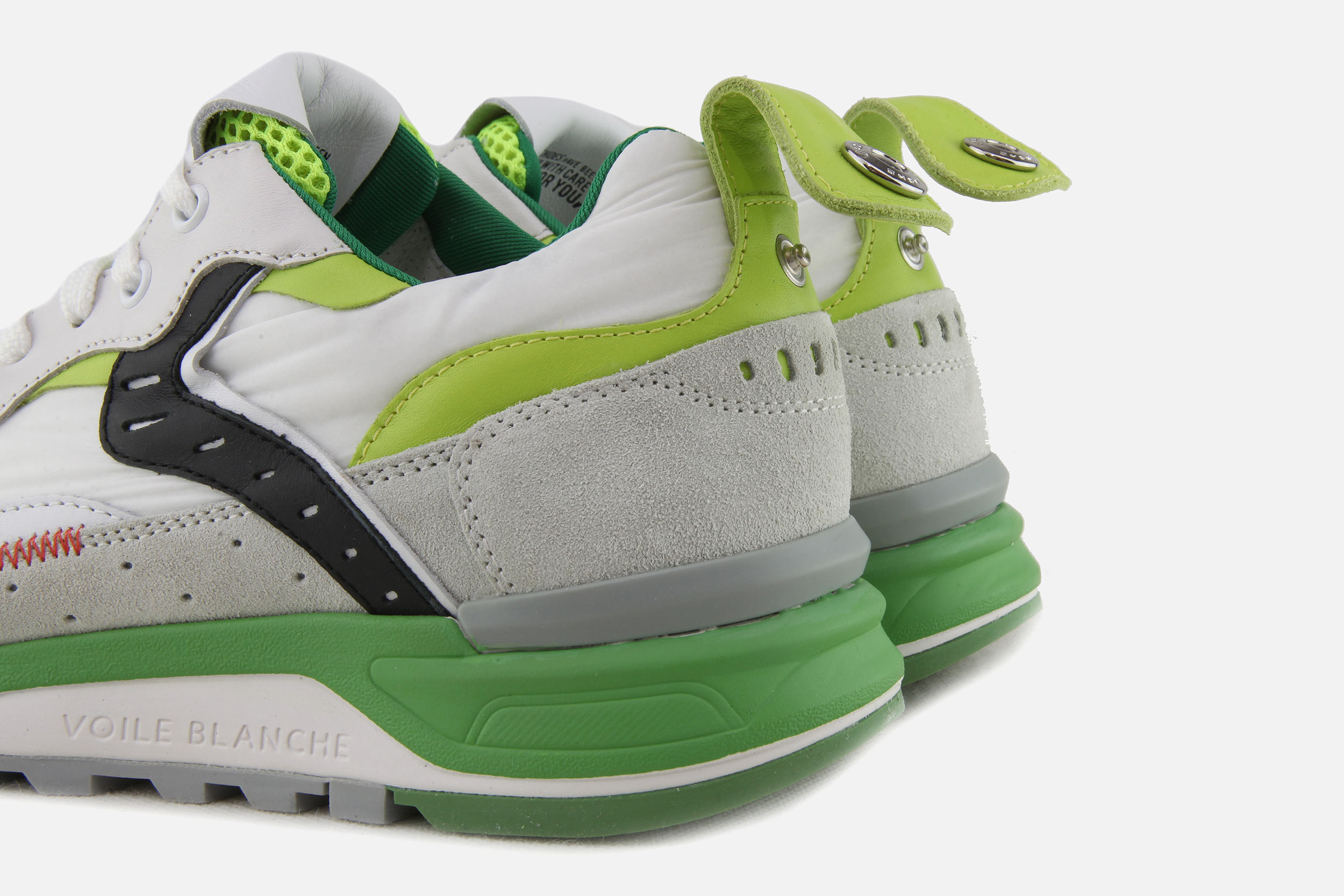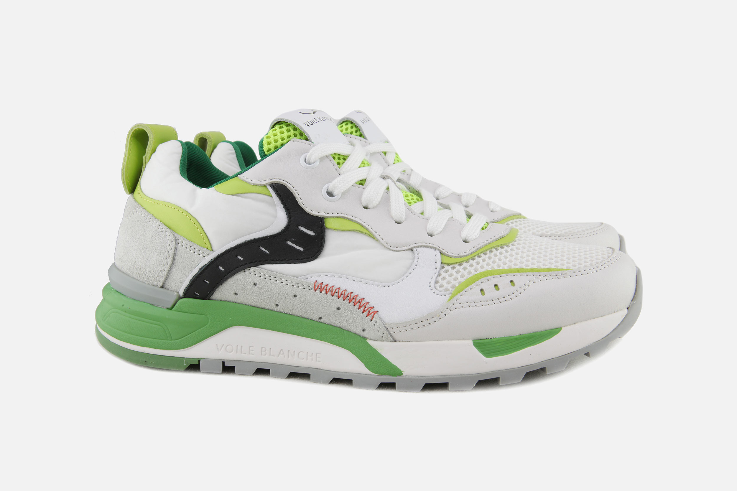 Mélange réussi de style affirmé et de fonctionnalité, la marque italienne de chaussures Voile Blanche vous propose chaque saison une collection incontournable de sneakers avant-gardistes et colorés. Avec ses volumes parfaitement étudiés, ses mélanges de cuirs et toiles (à l’origine toile de navigation, d’où le nom de la marque), ses semelles oversized, les chaussures Voile Blanche ont tout pour (vous) plaire. Couleurs intenses, perlées ou métallisées, choisissez votre préférée parmi nos modèles de chaussures iconiques de Voile Blanche : JULIA pour elle, LIAM pour lui et bien d’autres !