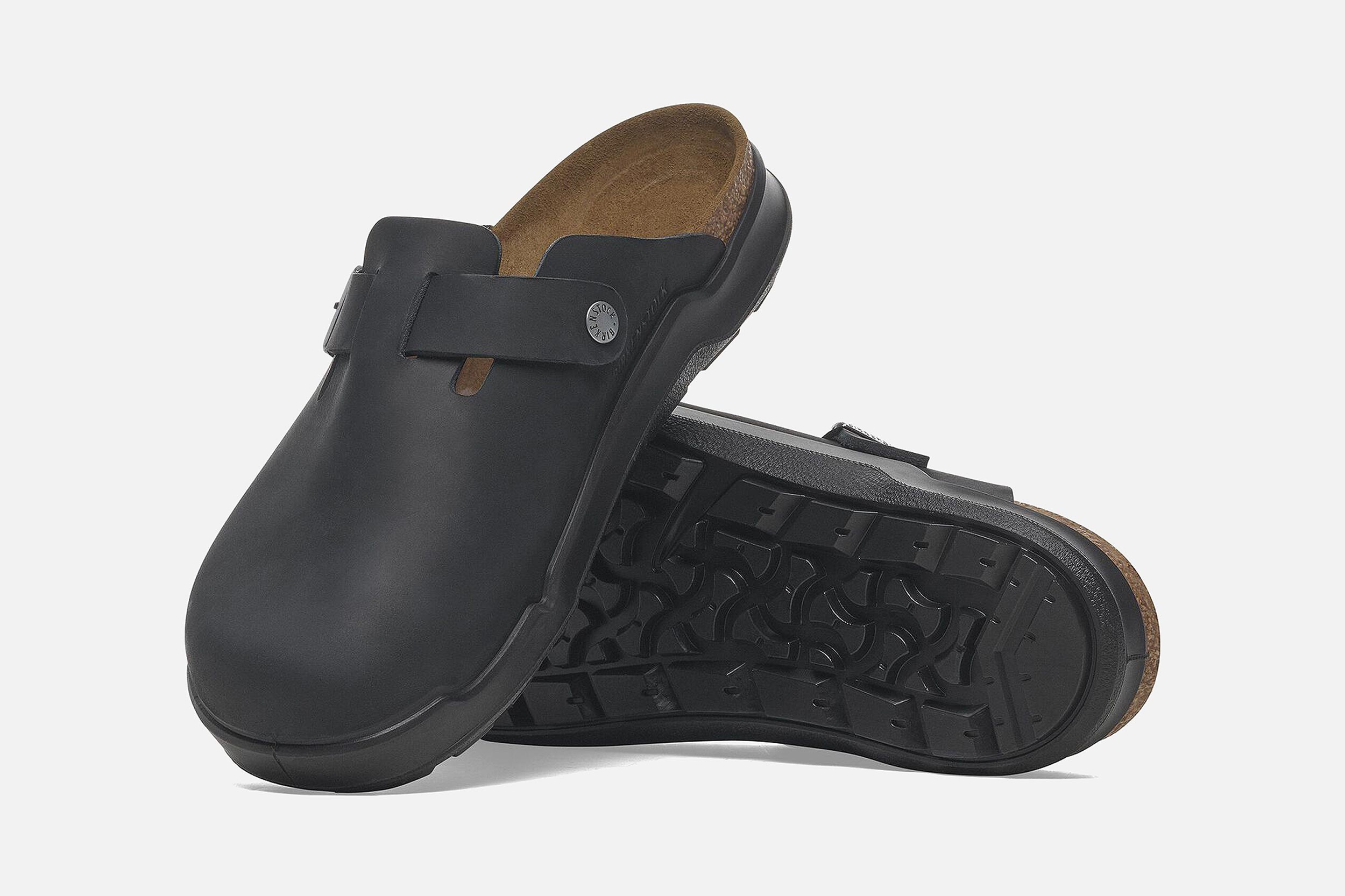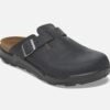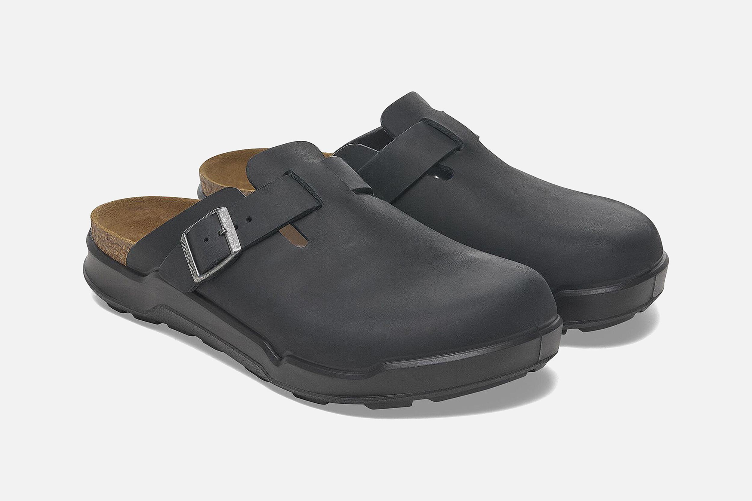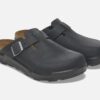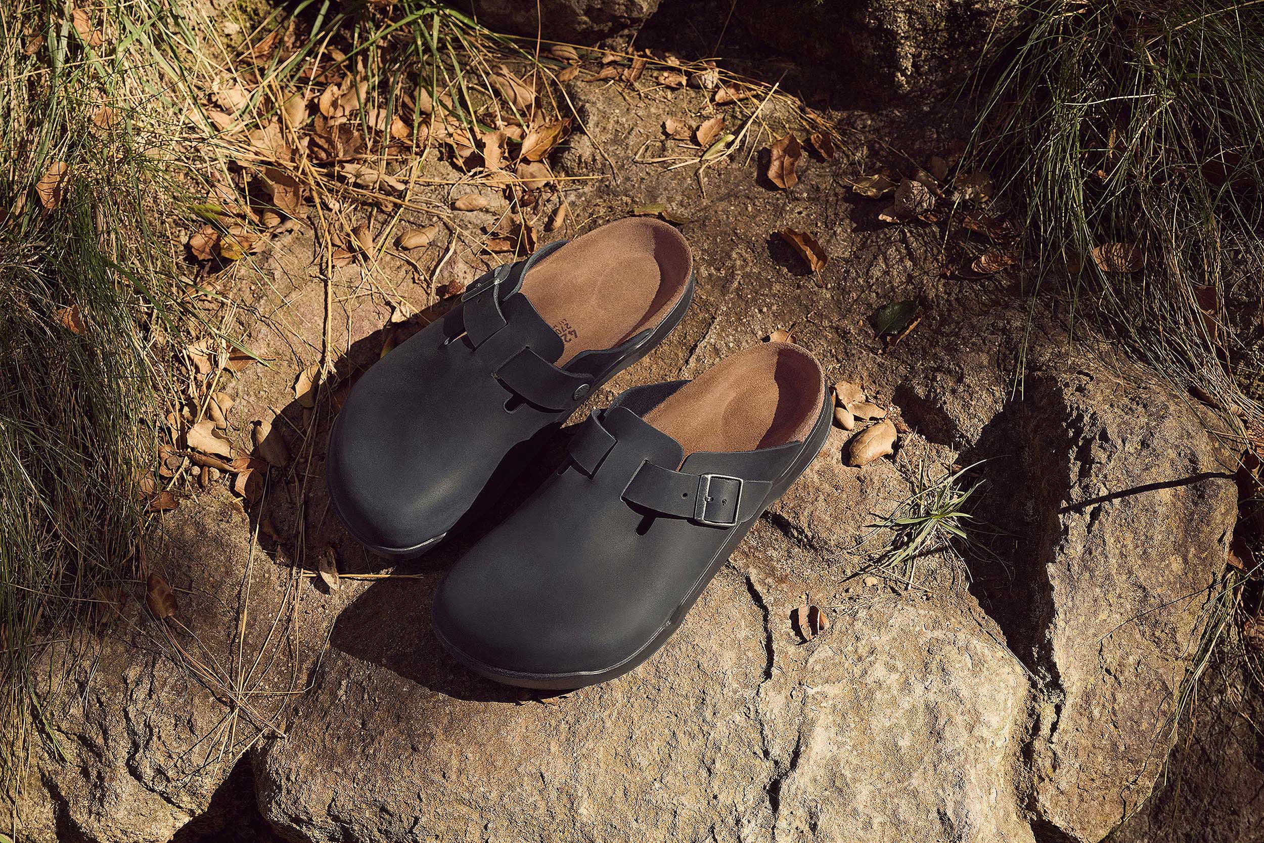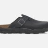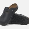 Black leather Birkenstock clogs