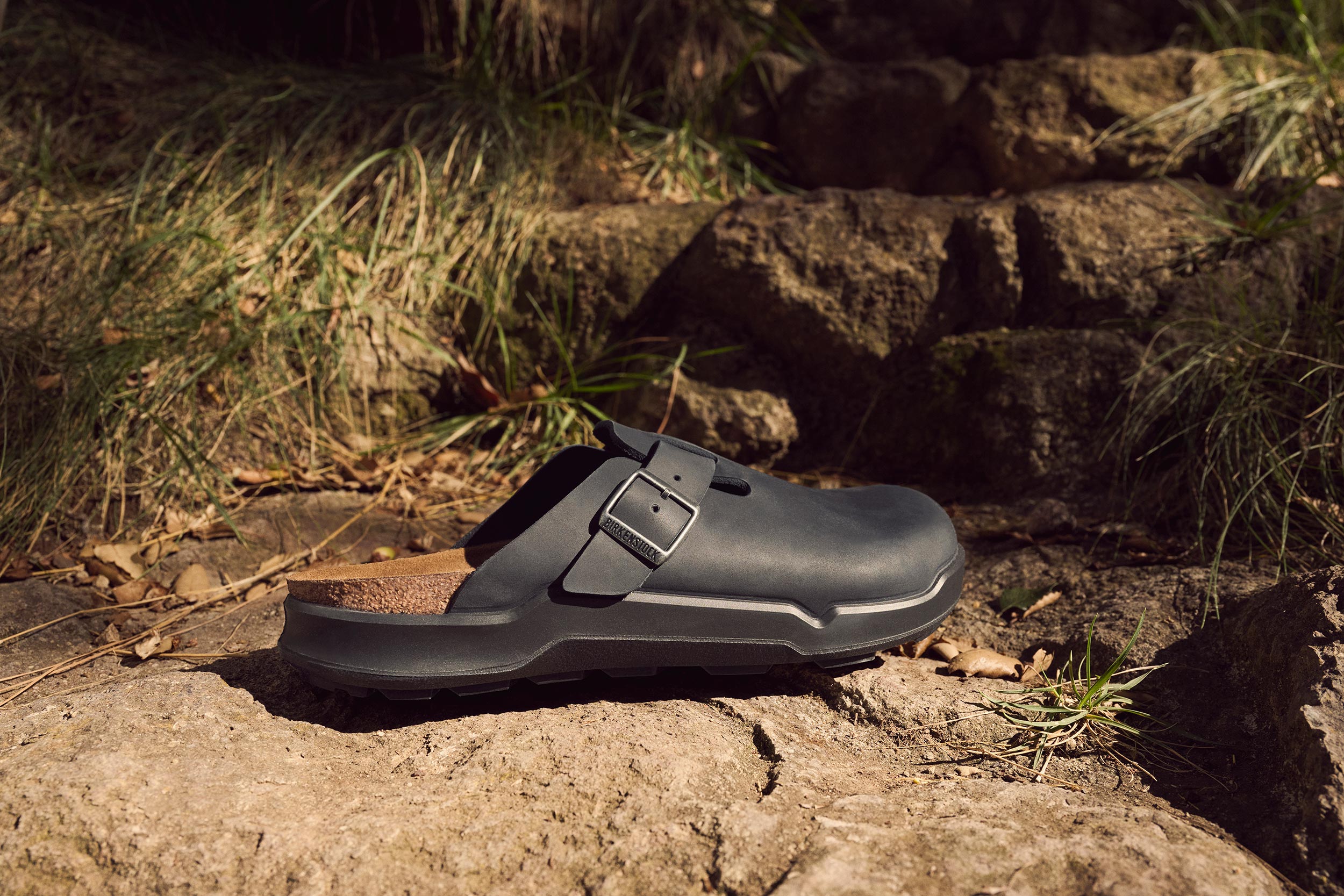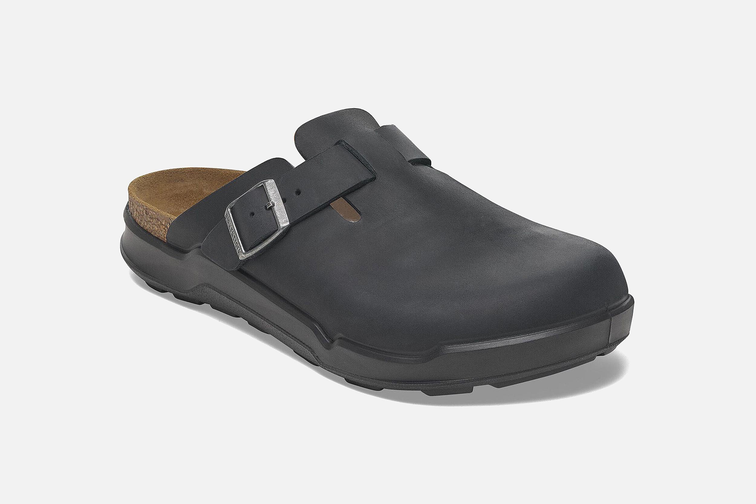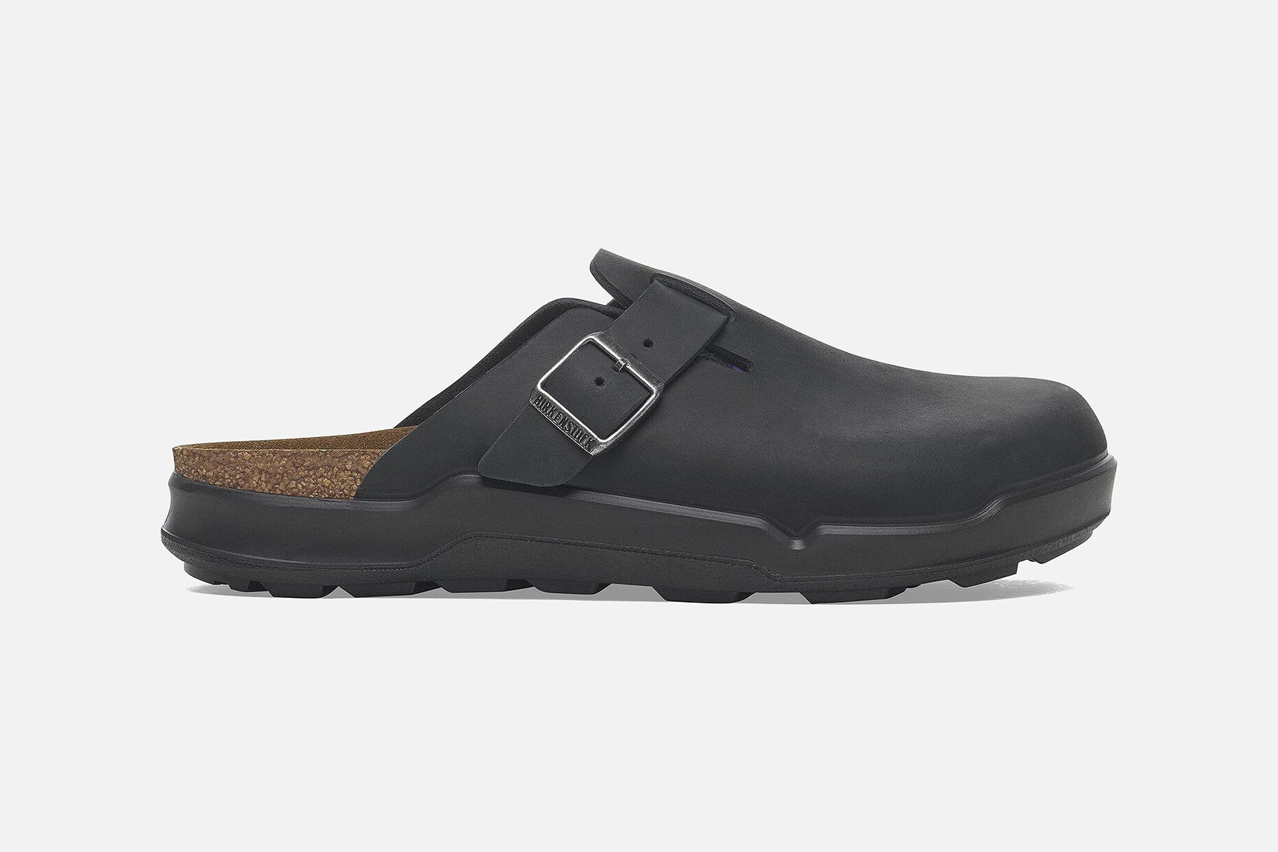 Black leather Birkenstock clogs