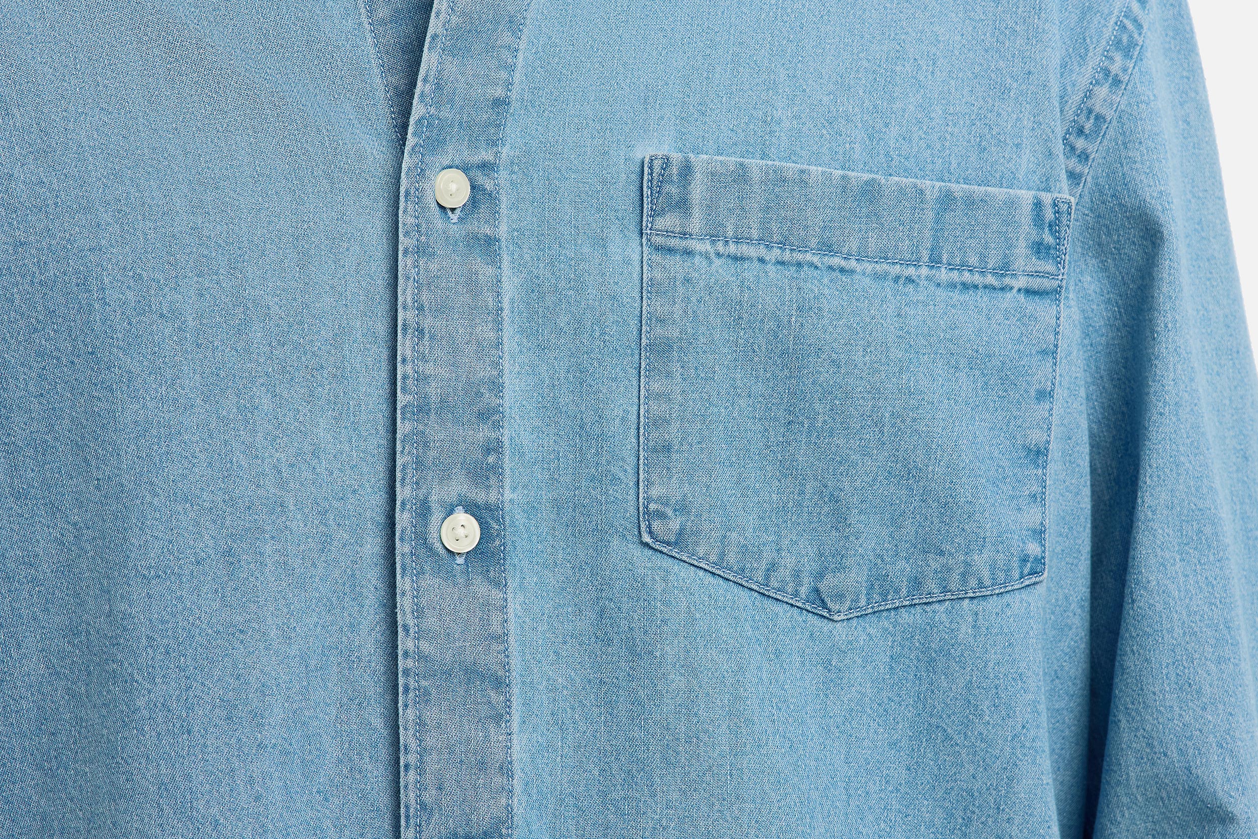 “- Product Type : Denim shirt – Neck : Shirt collar – Sleeve : Long sleeves – Cuffs : Buttoned cuffs – Closing : Button fastening – Pockets : Chest pocket – Wash/Finish : Light wash for a washed-out and bright denim look – Fit : Regular Fit”