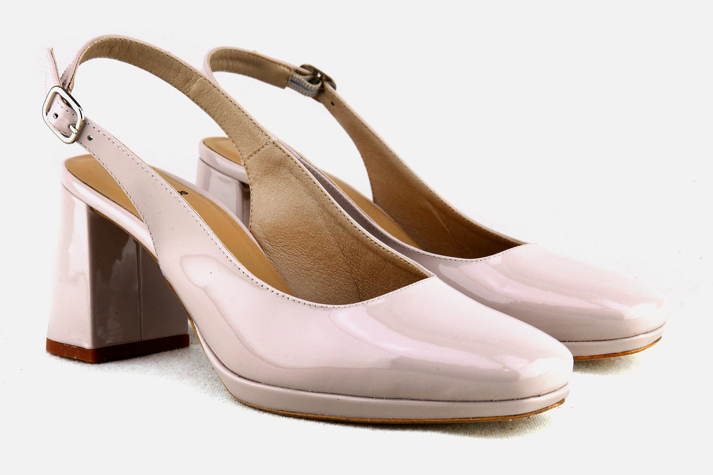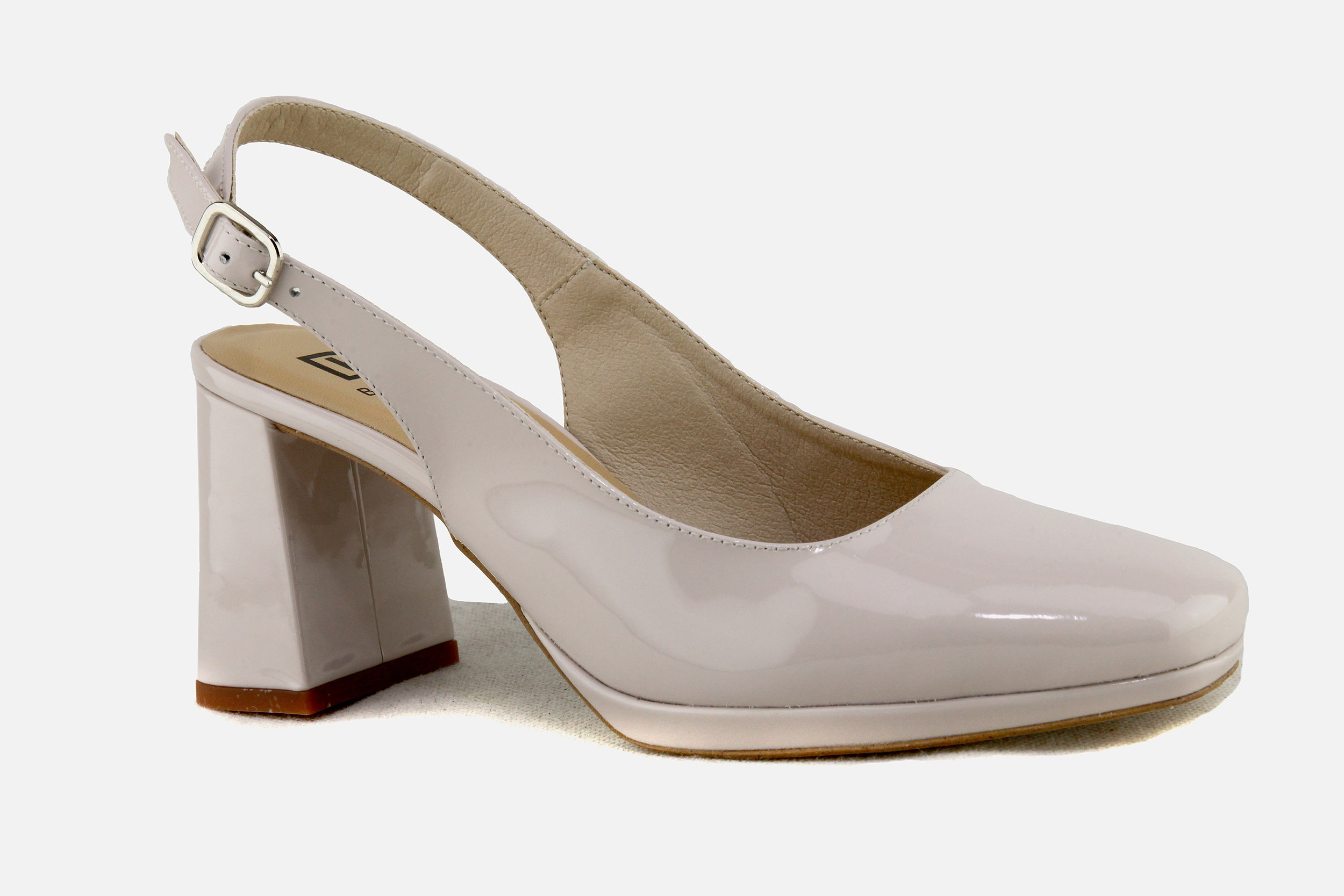 Beige patent leather Dorking pumps