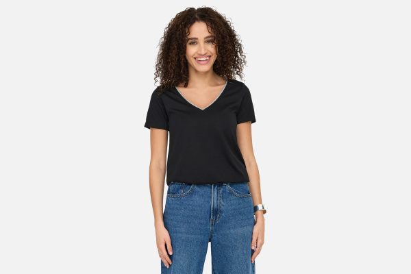 Look your best for school, work, and everyday activities in cool styles that are easy to match with your wardrobe favourites. JDY is a full-concept, international fashion brand offering affordable and on-trend products to the fashion-conscious consumer. – Product Type : Top – Neck : V-Neck – Sleeve : Short sleeves – Extra details : Glitter detail – Fit : Regular Fit