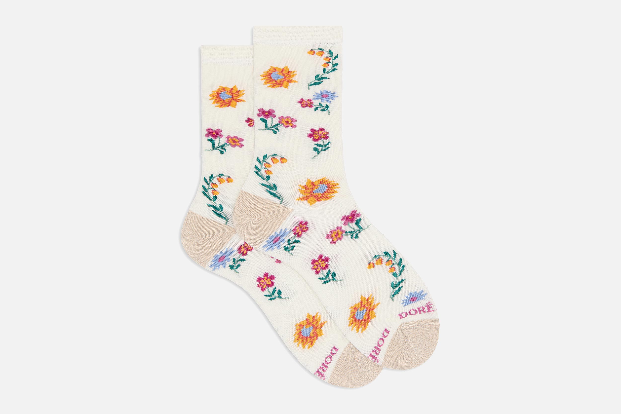 Doré Doré (ou « DD », pour les intimes) est une marque emblématique de chaussettes de qualité. Inventer, innover, développer, sont les maîtres-mots de cette marque française créée en 1819 à Troyes (en Champagne). Pour DD, le choix de la matière première est primordial. Seuls les meilleurs fils des plus belles matières comme le cachemire, la laine mérinos, le coton égyptien et le fil d’Écosse sont rigoureusement sélectionnés pour confectionner ces chaussettes d’exception. Chaussettes, socquettes, chaussettes courtes et discrètes (idéales à porter avec des sneakers), collants et mi-bas, pour tous les temps et pour tous les instants sont à découvrir à La Botte Chantilly ! Un choix incroyable de chaussettes unies et / ou fantaisie, pour homme comme pour femme. Messieurs, laissez-vous tenter par nos lignes de chaussettes unies en coton égyptien avec pointes et talons renforcés. Mesdames, laissez-vous séduire par notre gamme de collants sobres, ou plus funky ! Un irrésistible colorama, qui vous fera… une belle jambe ! Avis aux fans de DD : si vous recherchez une référence particulière que vous ne trouveriez pas sur notre site, interrogez notre service client eshop@la-botte.com qui se fera un plaisir de rechercher rapidement sa disponibilité pour vous satisfaire.