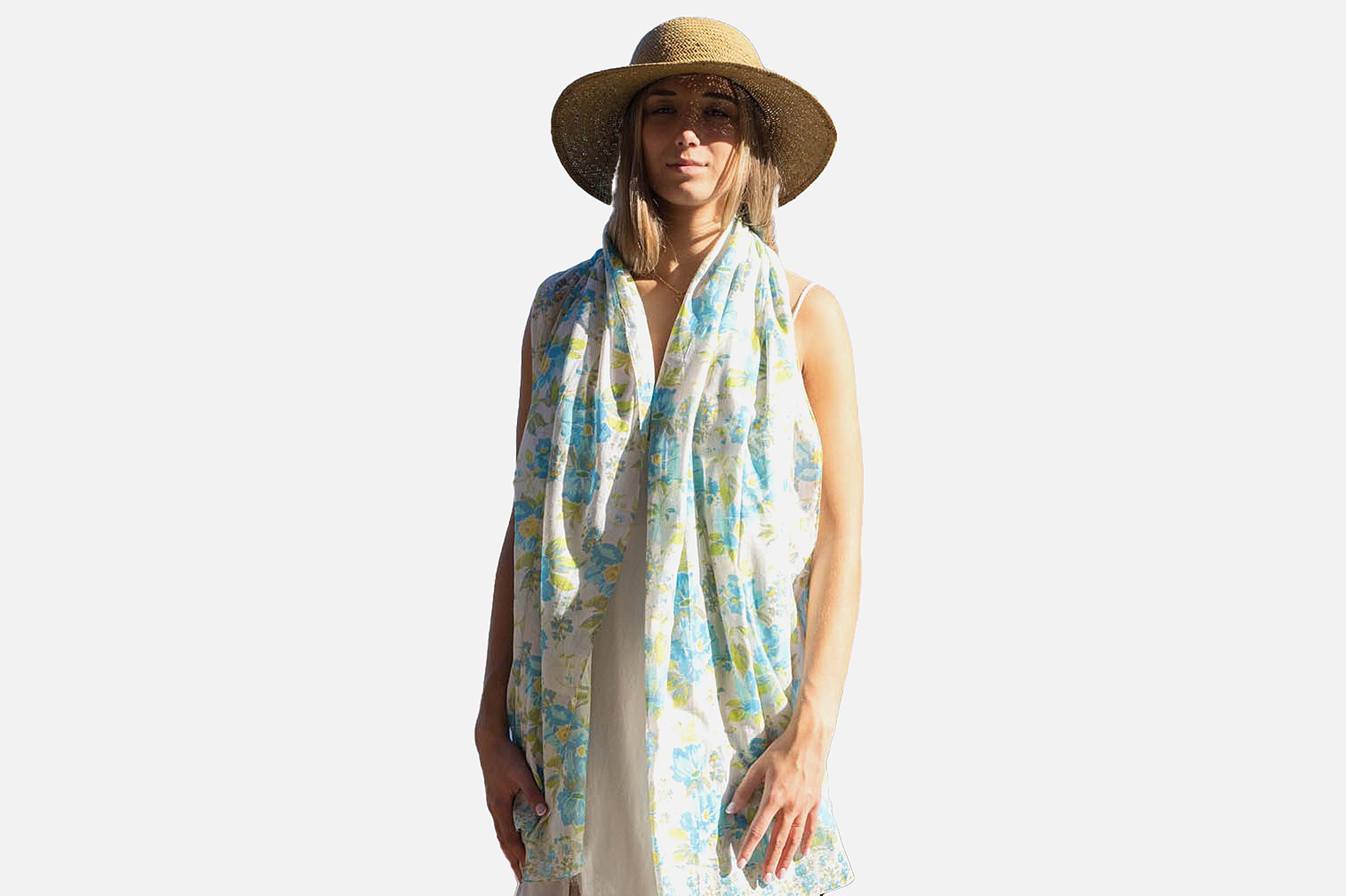 Blue cotton Colores de Otono scarf shawl