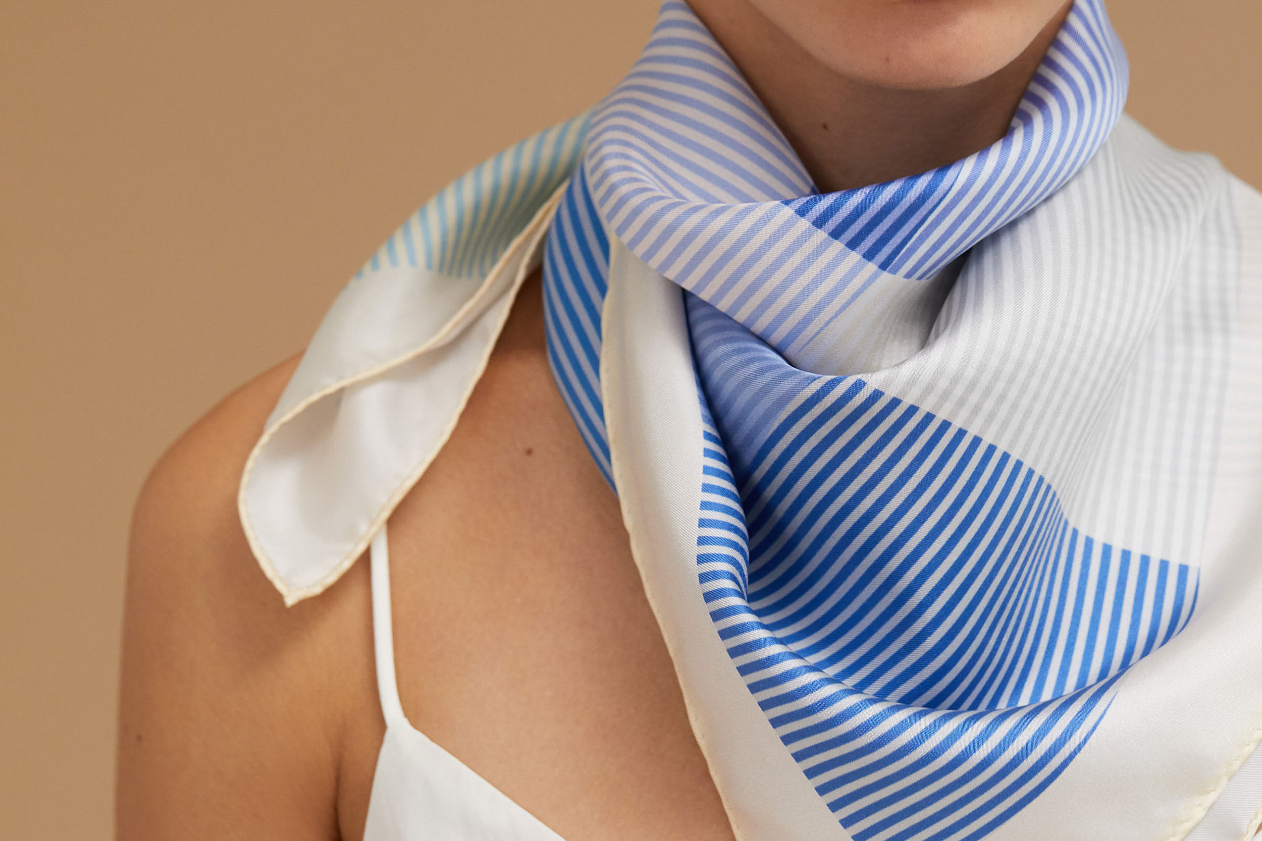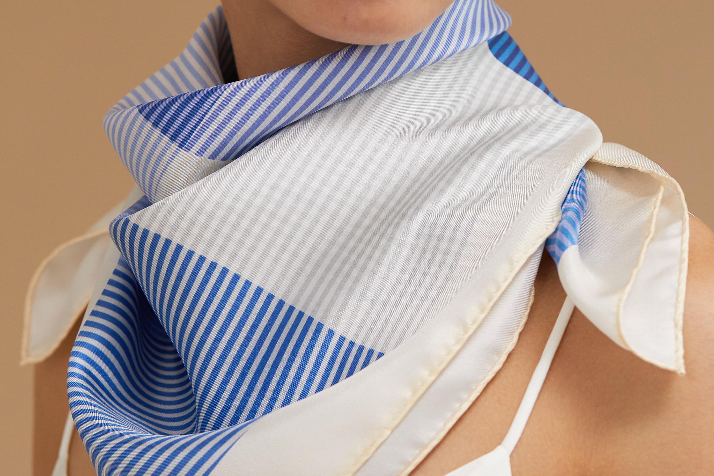 Blue silk Traits Paris scarf shawl