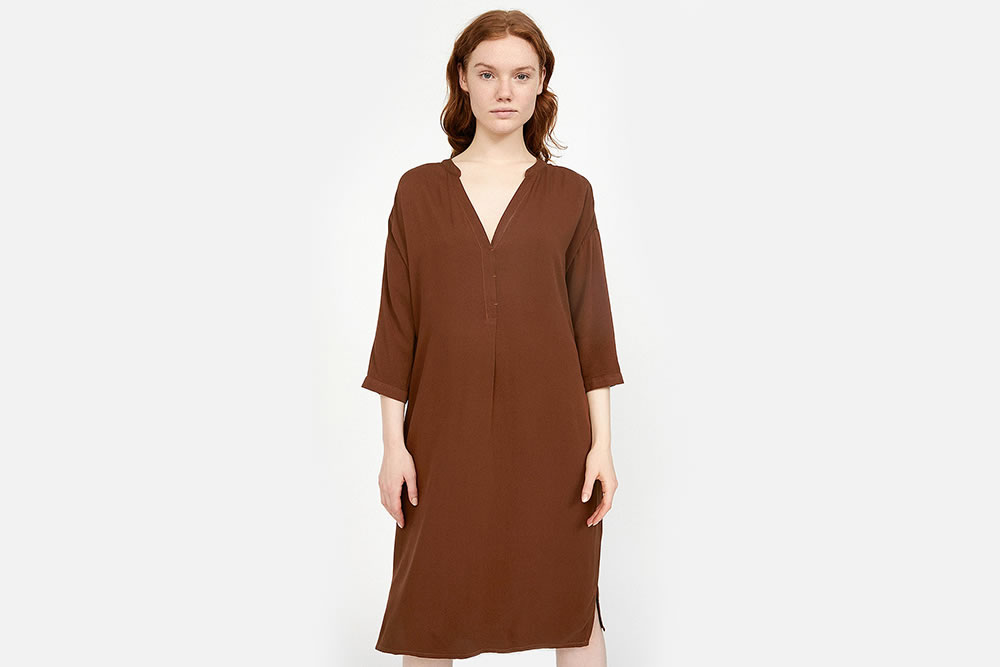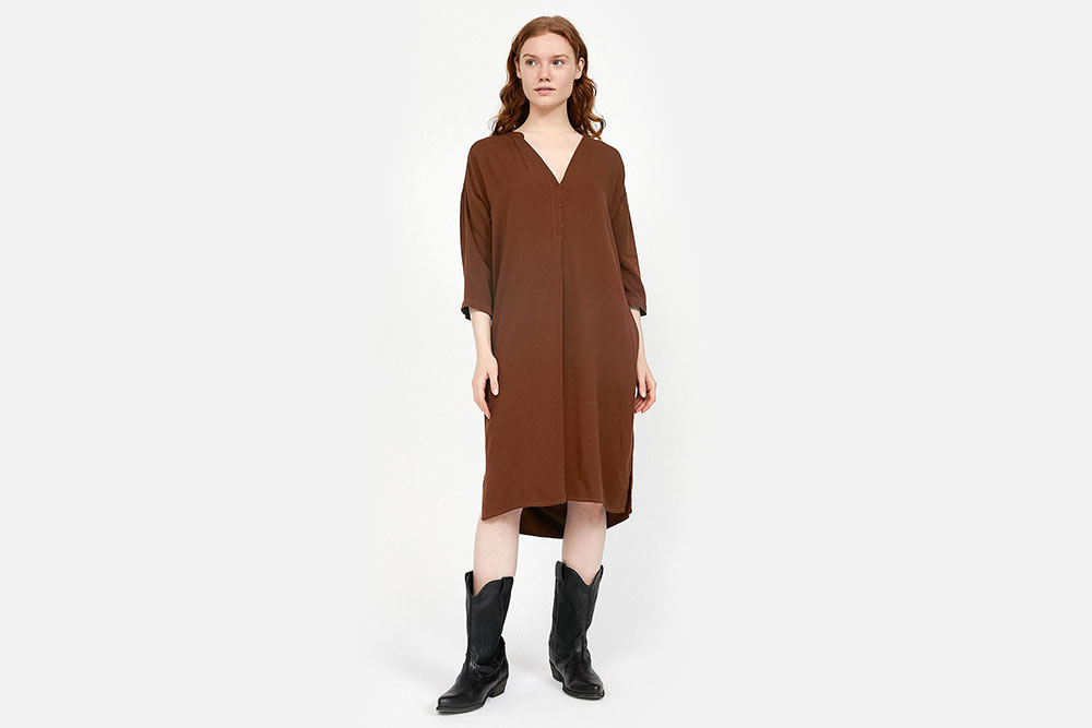 – Oversized dress with V-neck opening
