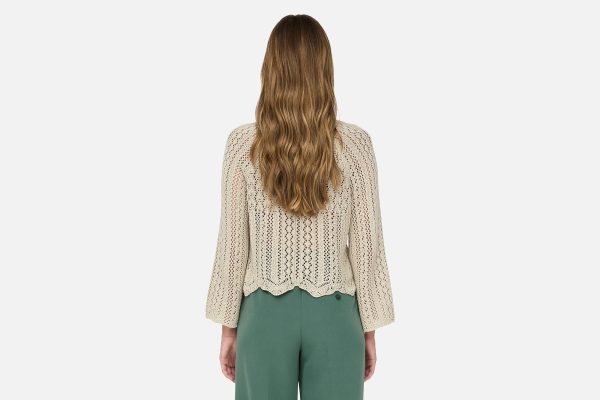 “Top off your look with a timeless, feminine knit and add softness and warmth. – Product Type : Knitted pullover – Neck : Round Neck – Sleeve : 3/4 sleeves – Sleeves : Wide sleeves – Length/Size : Cropped – Extra details : Scallop detail – Fit : Regular Fit”