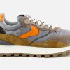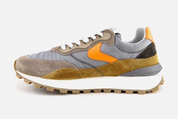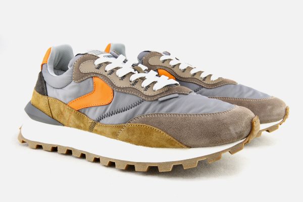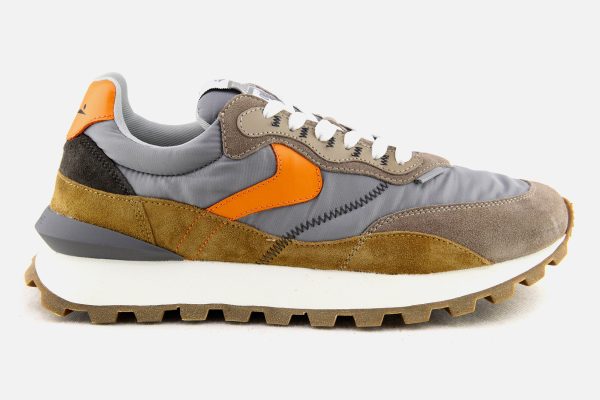 Sporty inspiration and high-tech details blend with a metropolitan mood for this new version of the Qwark sneaker. The technical fabric upper is complemented by contrasting suede inserts, with open stitchings and leather details. The contrasting heel counter is complemented by a three-dimensional spoiler that adds an active note. Ultra-light rubber running sole.