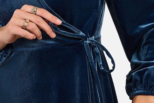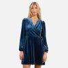 ROBE PORTEFEUILLE VELOURS BLEU