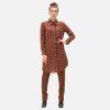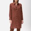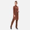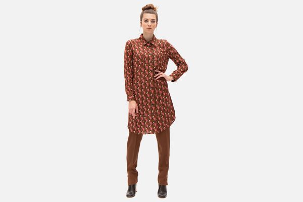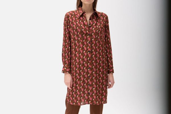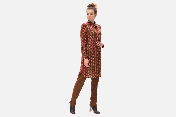 – Classy knee-length tunic-dress with brown-rose fancy graphic print