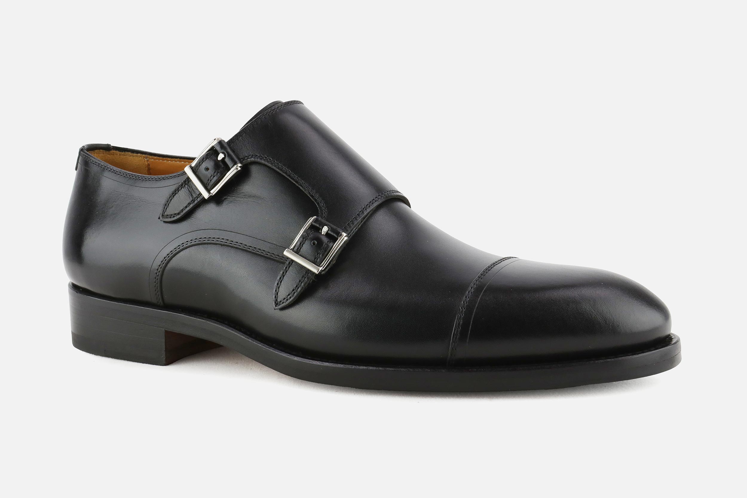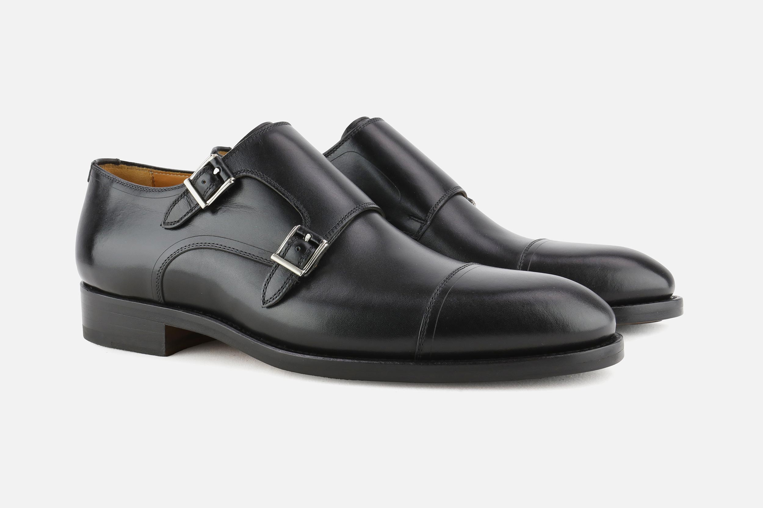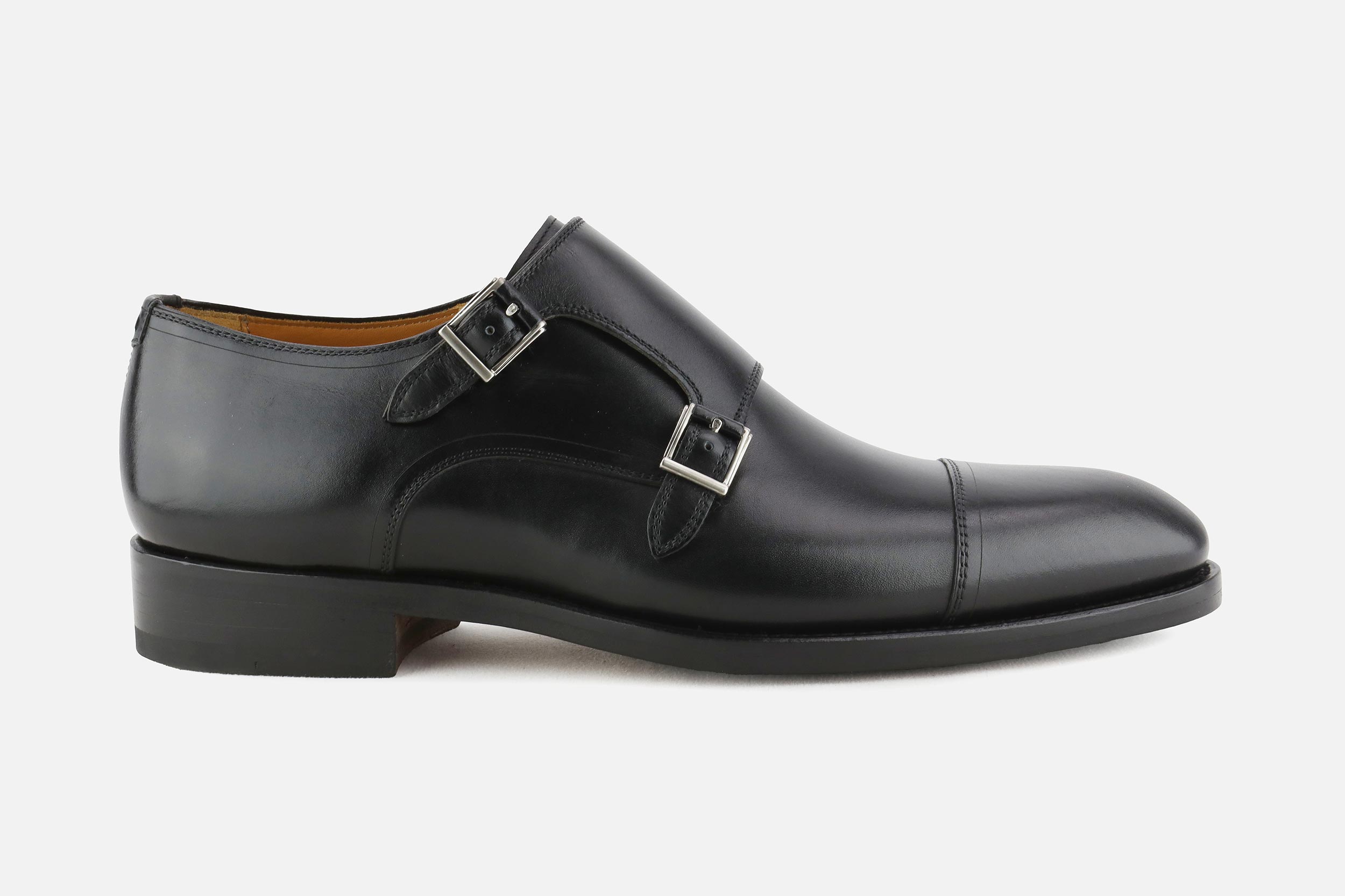 Black leather Magnanni monk shoes