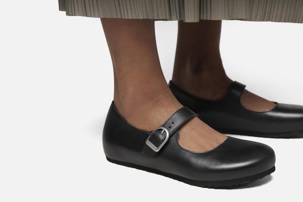 Black leather Birkenstock ballet pumps