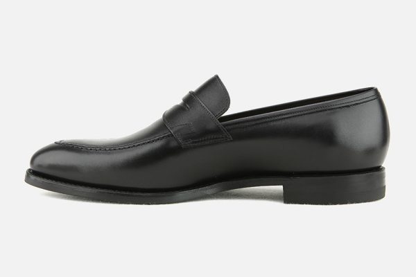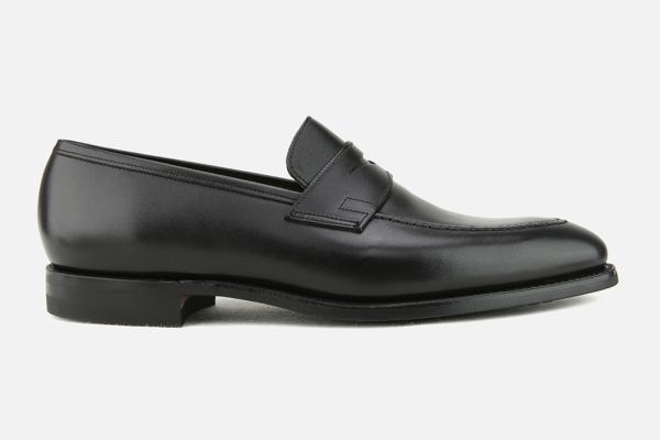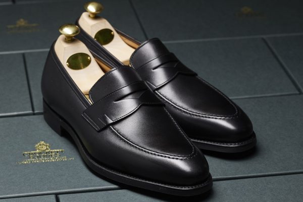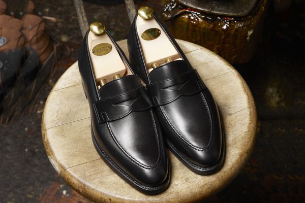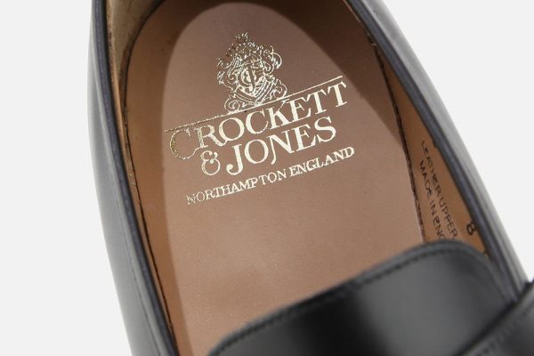 Black leather Crockett & Jones loafers