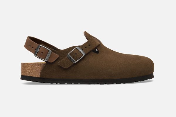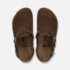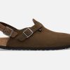 Brown suede Birkenstock clogs