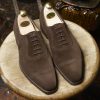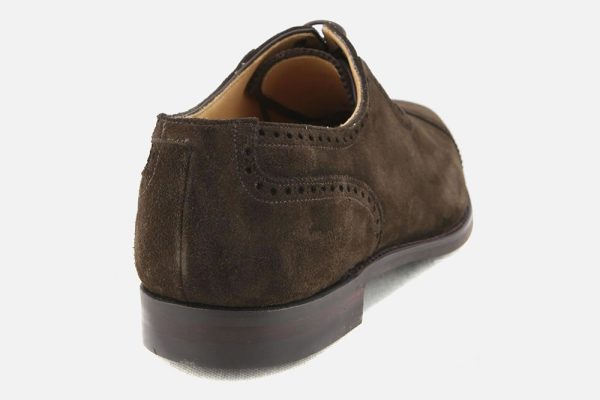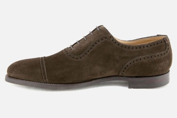 WESTBOURNE, an oxford shoe with an ‘austerity’ U-throat (or U-gorge) and punched toe cap design, made on last 348 from the finest suede leather, featuring City rubber outsoles.