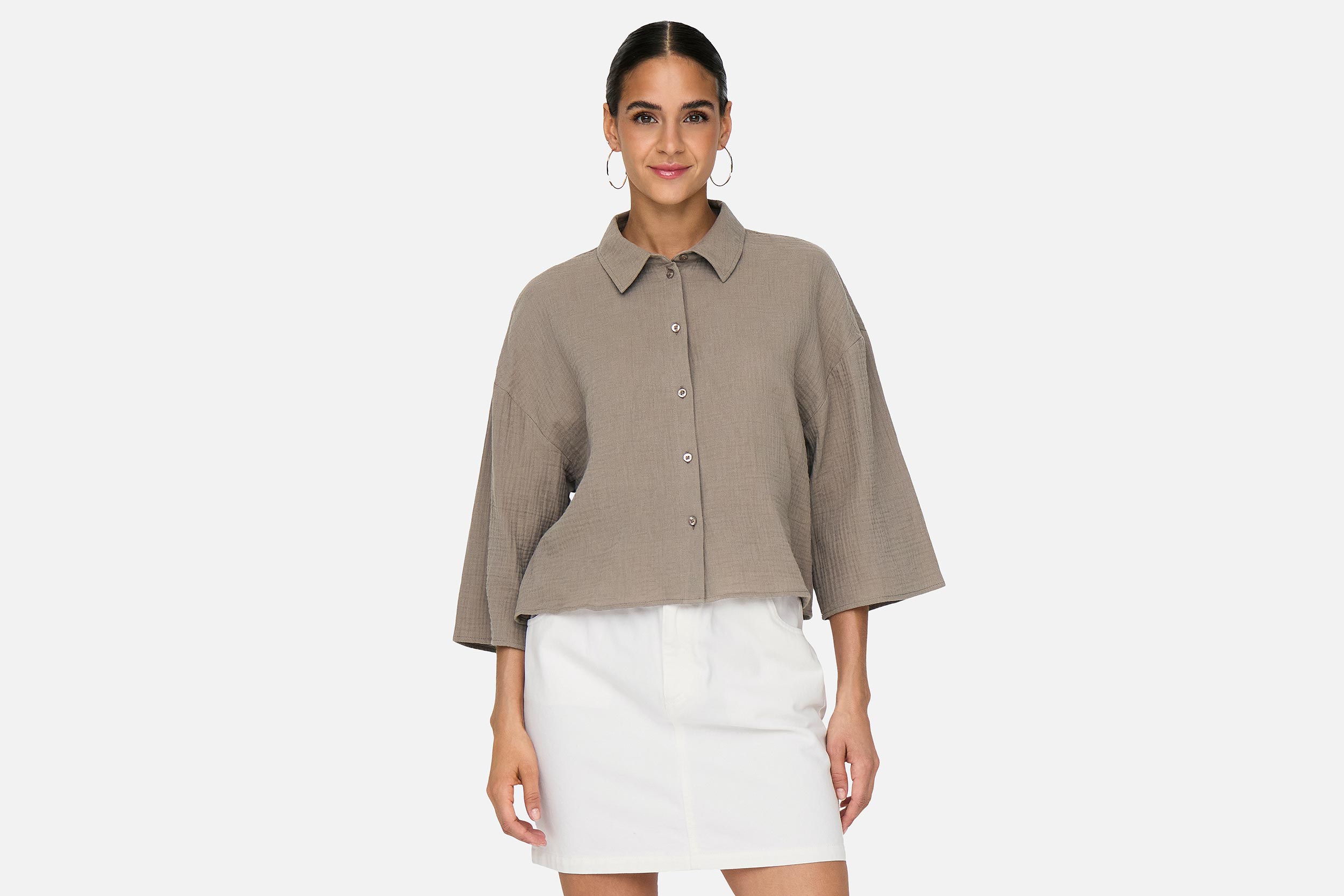 “Look your best for school, work, and everyday activities in cool styles that are easy to match with your wardrobe favourites.Cotton is made of natural fibres creating a soft, breathable fabric.JDY is a full-concept, international fashion brand offering affordable and on-trend products to the fashion-conscious consumer. – Product Type : Shirt – Neck : Shirt collar – Sleeve : 3/4 sleeves – Sleeves : Wide sleeves – Closing : Button fastening – Length/Size : Cropped – Fit : Regular Fit”
