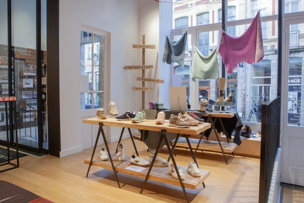 La majorité des matériaux utilisés dans ce magasin sont naturels (bois massif, métal et minéral) et écologiques (bois provenant de forêts éco-gérées, peintures biosourcées). Nous avons aussi fait le choix de travailler exclusivement avec des artisans de la région Hauts-de-France.
