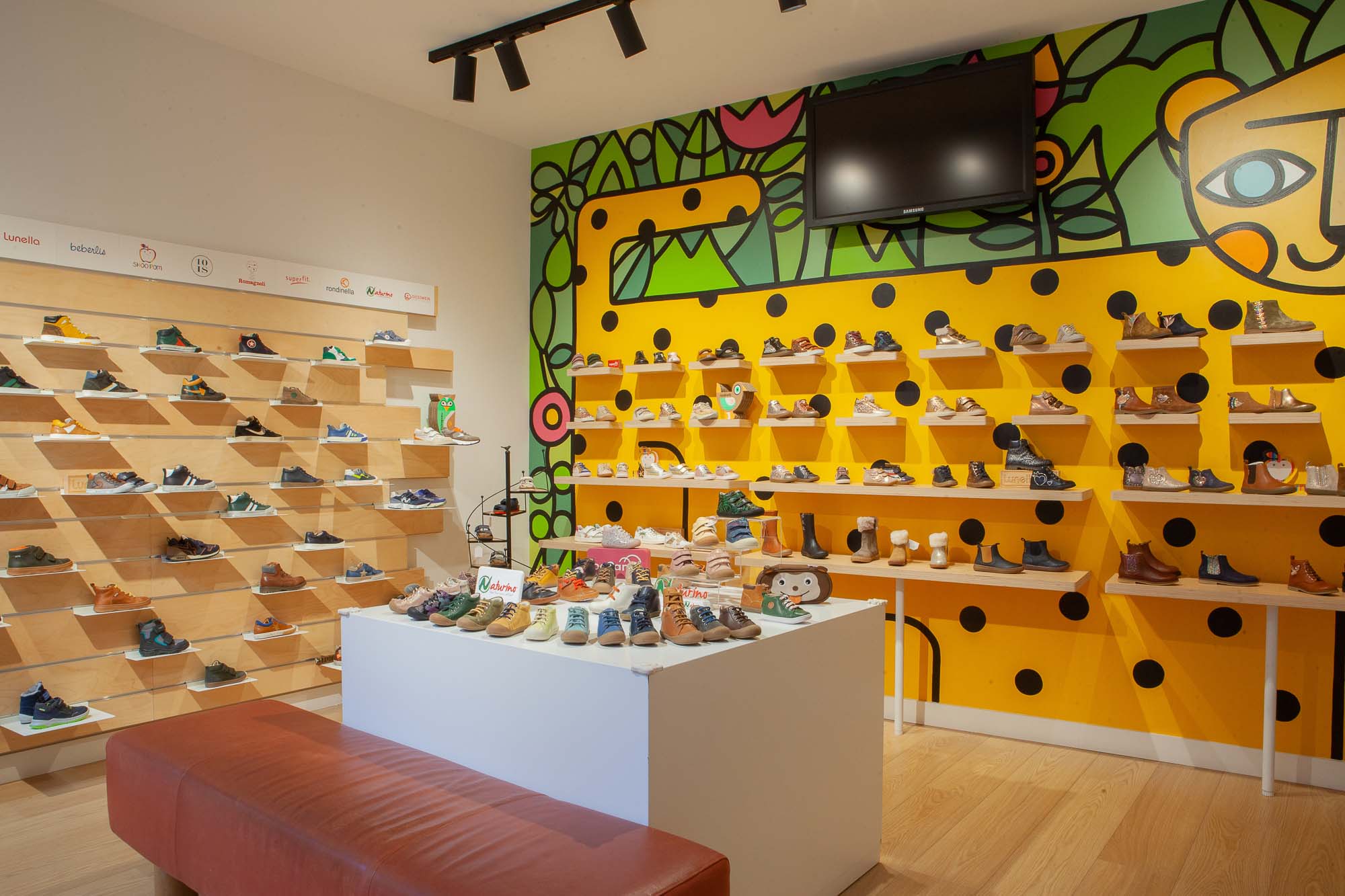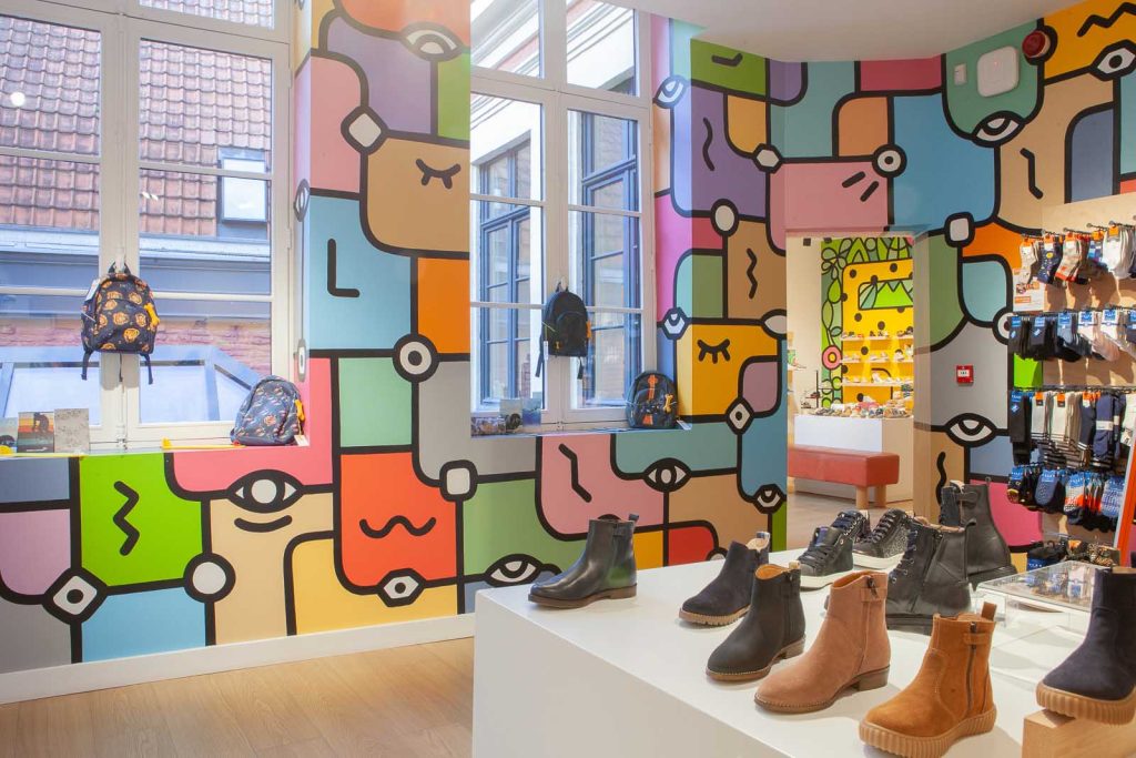 Pas de problème pour les poussettes, l’accès se fait par l’ascenseur… Ils sont accueillis dans un univers ludique et original, créé par l’artiste roubaisien LEM. De la pointure 18 au 40, des marques de qualité sont spécialement sélectionnées pour bien les chausser : Shoo Pom, Naturino, Acebos, Bellamy, Romagnoli, Pom d’Api… et bien d’autres.
