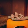 BIRKENSTOCK, ce nom vous est probablement familier et pour cause, cette marque allemande de sandales fait partie des plus connues et des plus vendues dans le monde! Chaque saison, femmes, hommes et enfants sortent leurs Birkenstock… et pas seulement pour les beaux jours ! Ces formidables sandales sont saines, confortables et aussi légères que des chaussons elles se portent aussi bien à l’extérieur qu’à l’intérieur, pour marcher, travailler, jardiner, ou farnienter ! Mais quel est donc le secret des chaussures Birkenstock ? Parlons d’abord du légendaire confort du lit de pied anatomique, sorte de semelle intérieure préformée, qui accueille le pied. Forte de ses plus de 200 ans d’expérience (depuis 1774 !) la marque a su peaufiner au fil du temps cette pièce maîtresse parfaitement bien conçue, depuis sa forme (inspirée de la trace de pas naturellement laissée dans le sable par les pieds), jusqu’à sa composition (liège et latex ultra-légers, anti-microbiens, aux propriétés à mémoire de forme). Un bien-être immédiat, un confort d’excellence, des chaussures légères et ergonomiques, faciles à enfiler et transporter, idéales pour les voyages ou les vacances, ou pour rester à la maison ! Le succès des Birkenstock s’explique aussi par sa multitude de déclinaisons : en version une bride (MADRID), deux brides (ARIZONA), tong (GIZEH) et autres variantes (MAYARI ou SIENA) jouant sur les matières et les couleurs. Partout dans le monde des générations de femmes, hommes et enfants, fans inconditionnels et aficionados, fashion victims et néophytes portent les authentiques Birkenstock, souvent imitées, jamais égalées. Marque éco-responsable depuis maintenant près de 30 ans, Birkenstock s’engage sérieusement pour l’avenir de notre planète. La plupart des matières premières utilisées dans la fabrication des chaussures proviennent de sources naturelles durables : liège, latex naturel, jute, cuir… même les colles utilisées sont écologiques ! Alors, qu’attendez-vous pour rejoindre le fan-club des chaussures Birkenstock ? Pointure et chaussant : La marque allemande Birkenstock chausse plutôt grand. Nous vous conseillons de choisir une taille en dessous de votre pointure habituelle.«