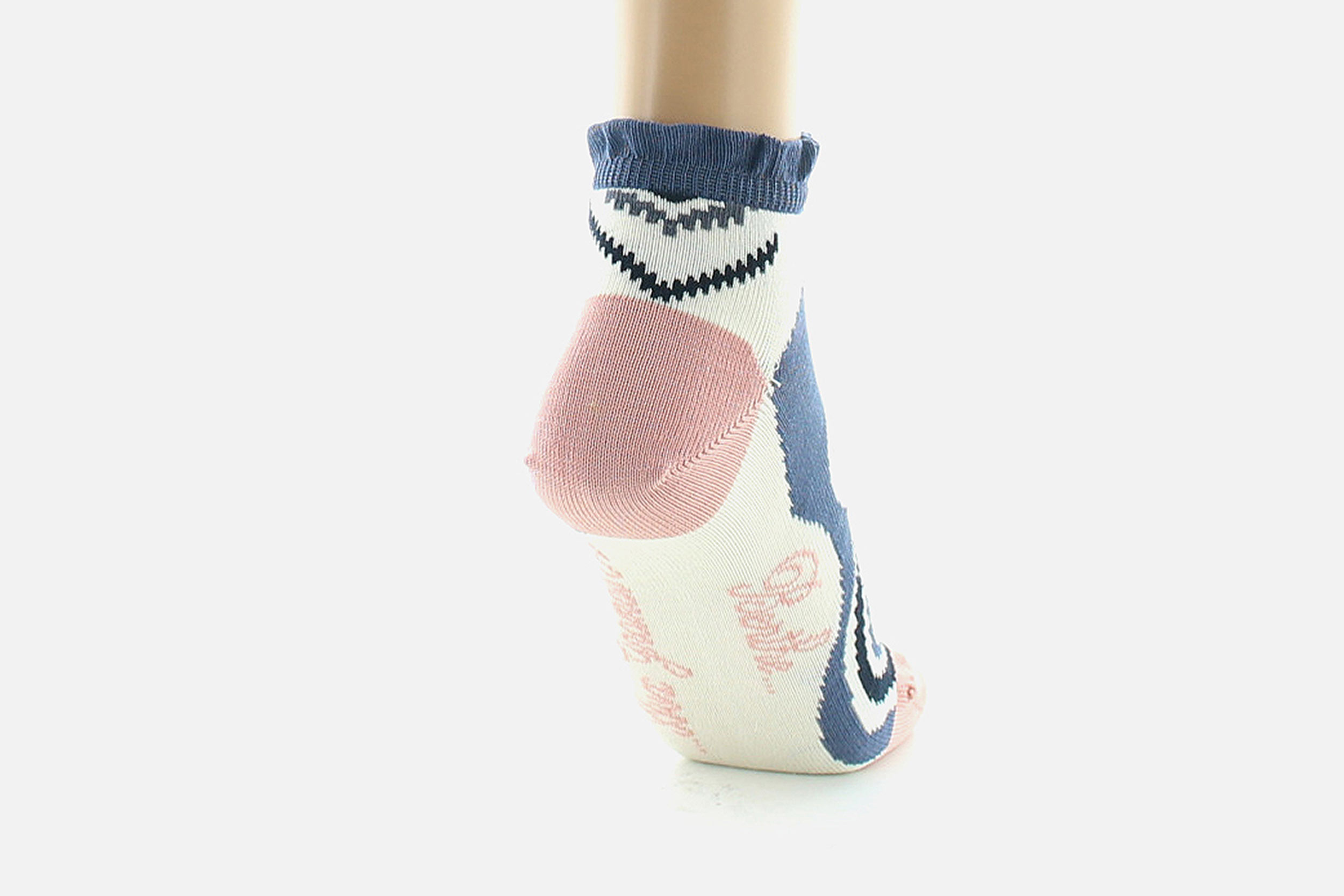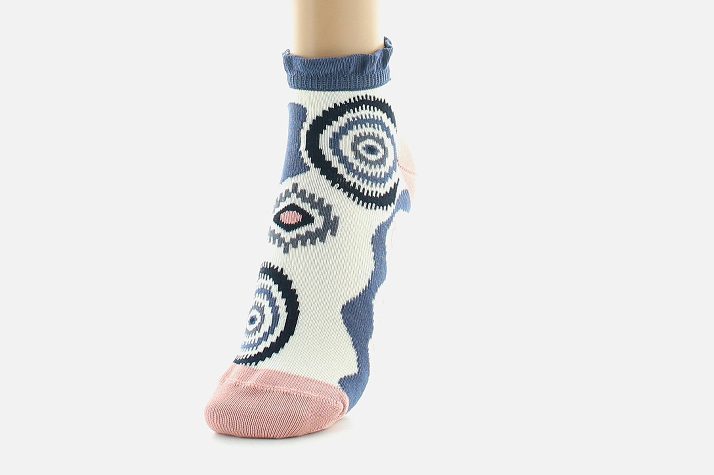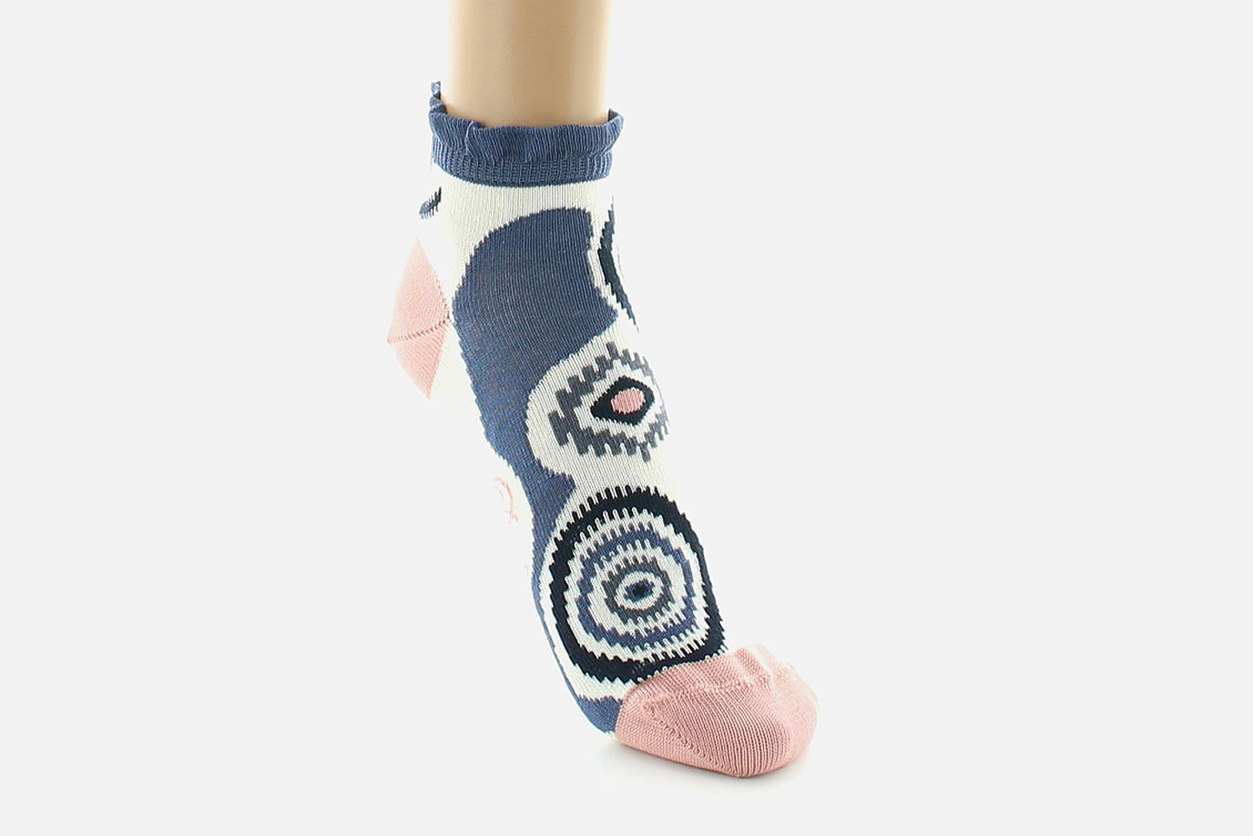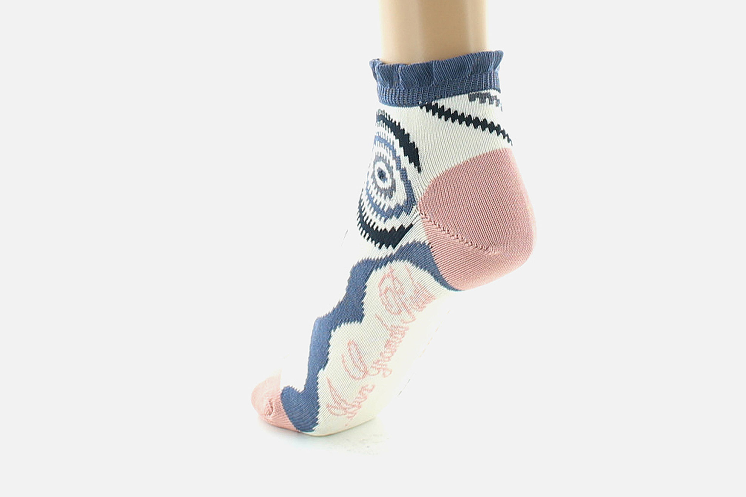 Les socquettes « graphisme géométrique » se composent de différents ronds et losanges, dans des couleurs douces et pastels.