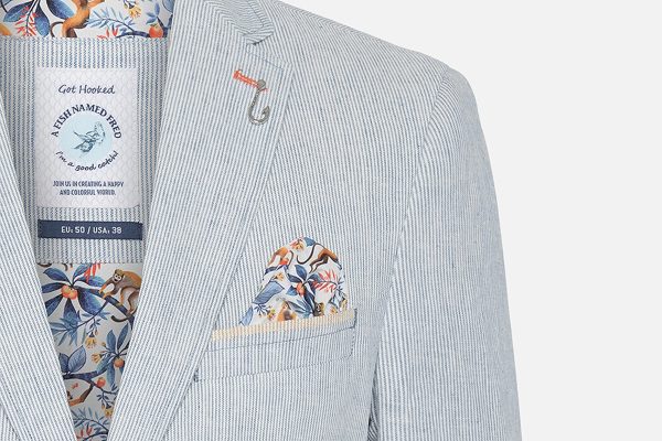 A Fish Named Fred, marque hollandaise drôle et sympathique, propose des vestes et des chemises (mais aussi gilets, pantalons et shorts) aussi surprenants que colorés, avec de nombreux détails cachés, en guise de signature. L’idéal pour se sentir comme un poisson dans l’eau !