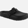 BIRKENSTOCK, ce nom vous est probablement familier et pour cause, cette marque allemande de sandales fait partie des plus connues et des plus vendues dans le monde! Chaque saison, femmes, hommes et enfants sortent leurs Birkenstock… et pas seulement pour les beaux jours ! Ces formidables sandales sont saines, confortables et aussi légères que des chaussons elles se portent aussi bien à l’extérieur qu’à l’intérieur, pour marcher, travailler, jardiner, ou farnienter ! Mais quel est donc le secret des chaussures Birkenstock ? Parlons d’abord du légendaire confort du lit de pied anatomique, sorte de semelle intérieure préformée, qui accueille le pied. Forte de ses plus de 200 ans d’expérience (depuis 1774 !) la marque a su peaufiner au fil du temps cette pièce maîtresse parfaitement bien conçue, depuis sa forme (inspirée de la trace de pas naturellement laissée dans le sable par les pieds), jusqu’à sa composition (liège et latex ultra-légers, anti-microbiens, aux propriétés à mémoire de forme). Un bien-être immédiat, un confort d’excellence, des chaussures légères et ergonomiques, faciles à enfiler et transporter, idéales pour les voyages ou les vacances, ou pour rester à la maison ! Le succès des Birkenstock s’explique aussi par sa multitude de déclinaisons : en version une bride (MADRID), deux brides (ARIZONA), tong (GIZEH) et autres variantes (MAYARI ou SIENA) jouant sur les matières et les couleurs. Partout dans le monde des générations de femmes, hommes et enfants, fans inconditionnels et aficionados, fashion victims et néophytes portent les authentiques Birkenstock, souvent imitées, jamais égalées. Marque éco-responsable depuis maintenant près de 30 ans, Birkenstock s’engage sérieusement pour l’avenir de notre planète. La plupart des matières premières utilisées dans la fabrication des chaussures proviennent de sources naturelles durables : liège, latex naturel, jute, cuir… même les colles utilisées sont écologiques ! Alors, qu’attendez-vous pour rejoindre le fan-club des chaussures Birkenstock ? Pointure et chaussant : La marque allemande Birkenstock chausse plutôt grand. Nous vous conseillons de choisir une taille en dessous de votre pointure habituelle.«