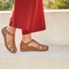 | Description | Sandale Salomé : Lanières perpendiculaires en forme de T sur l’avant du pied, rattachées par une bride velcro à la cheville, pour un bon placement et maintien du pied |