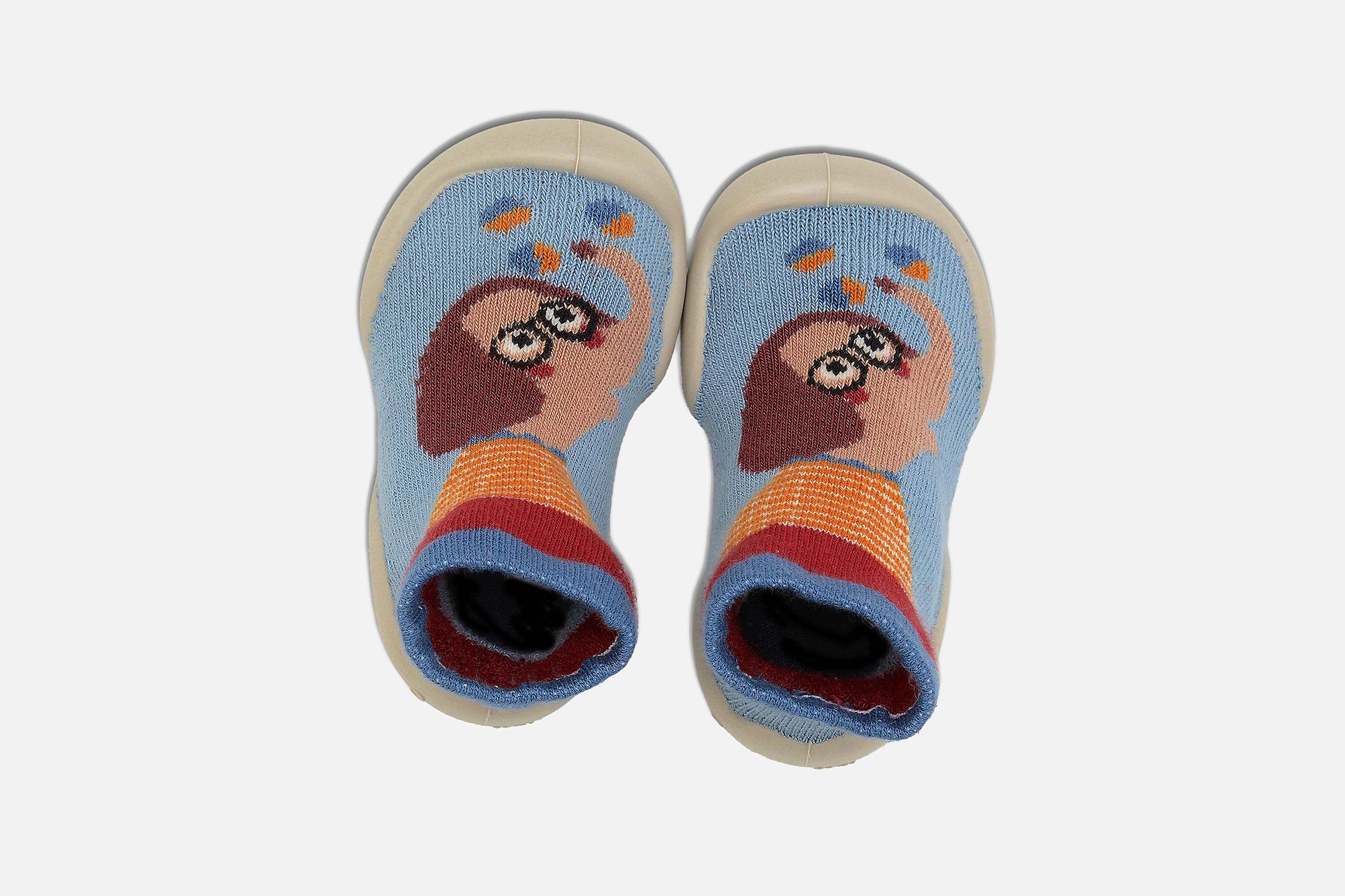 Chaussons-chaussettes Collégien bleus en textile coton