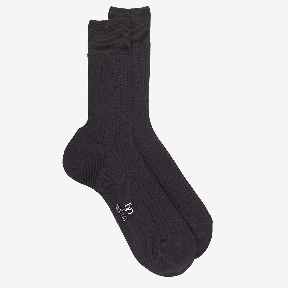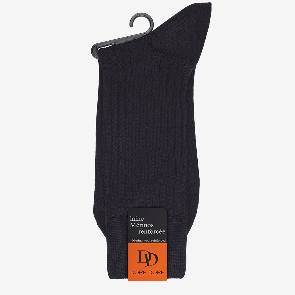 Chaussettes homme en laine Mérinos Australienne fine et luxueuse. Les chaussettes ‘Intemporel’ haut de gamme vous offrent une douceur incomparable et caressent la peau grâce à la qualité supérieure de la laine Merinos utilisée. La structure côtelée des chaussettes garantit une ergonomie parfaite. Les chaussettes « Intemporel » sont très confortables et souples grâce à la laine mérinos d’une qualité exceptionnelle. La laine Mérinos est tondue sur les brebis de race Mérinos, c’est la plus douce et la plus fine de toutes les laines. Ces chaussettes en laine Mérinos ont un bord souple qui ne comprime pas la jambe et assure un maintien optimal. Les pointes et talons sont renforcés pour diminuer l’usure à son maximum. Une chaussette très confortable pour passer un bon hiver tout en douceur et chaleur… Facile à combiner avec vos jeans ou pantalons habillés, mais aussi avec vos costumes. Les chaussettes Doré Doré sont 100% fabriquées en Italie.