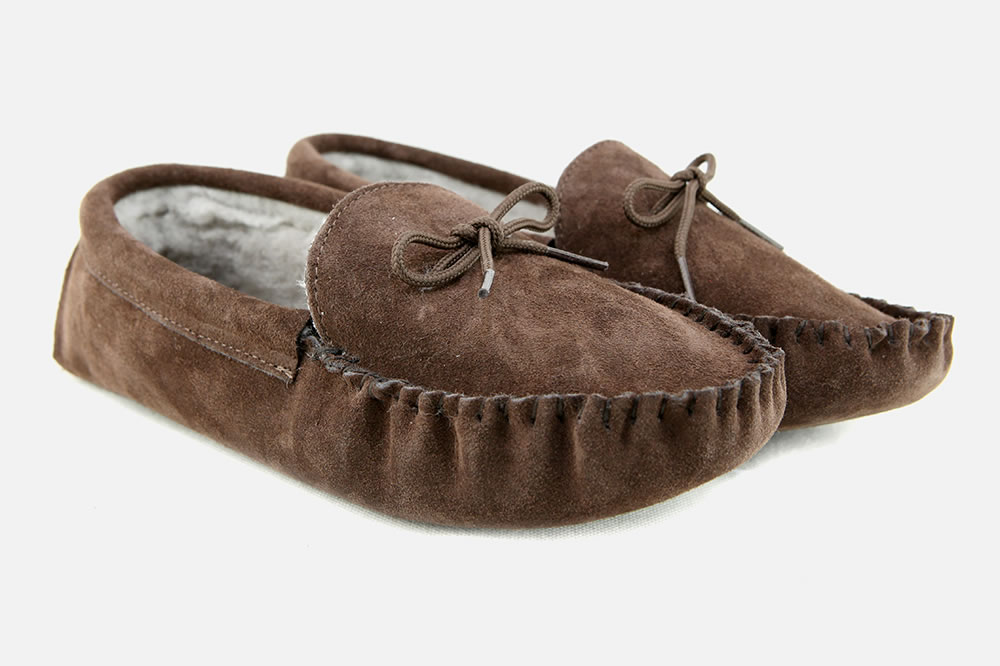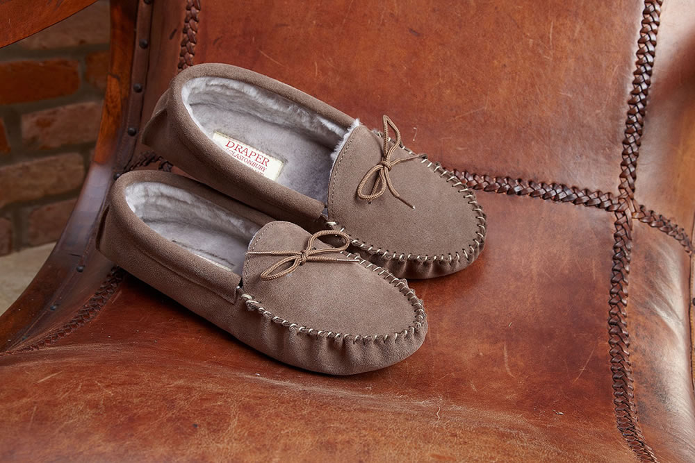 Glastonbury, dans le Somerset, était dàs l’époque médiévale un lieu où l’on travaillait la peau de mouton et le cuir. Installée depuis les années 1930 dans cette région, Draper est une maison familiale spécialisée dans la fabrication de pantoufles en mouton véritable, de qualité exceptionnelle. Il faut de la dextérité, des mains expertes et du savoir-faire pour produire ces hand-turned sheepskin slippers », et tous ceux qui en ont déjà porté vous diront le plaisir extraordinaire à les porter. »