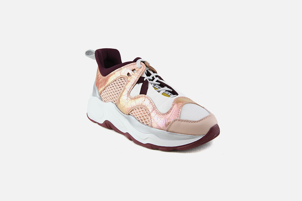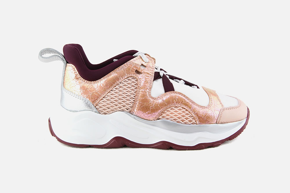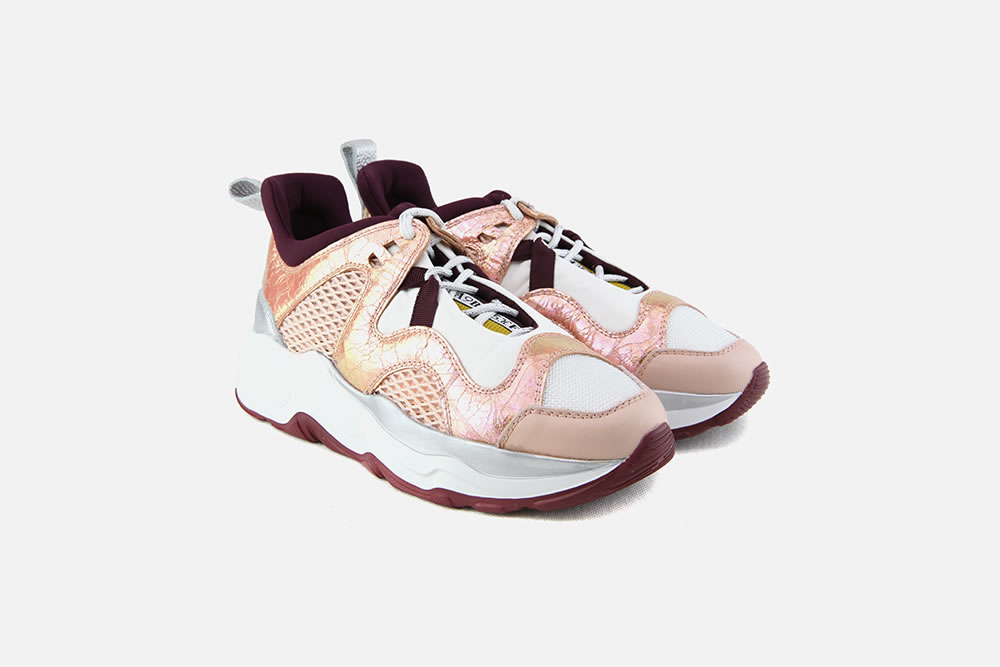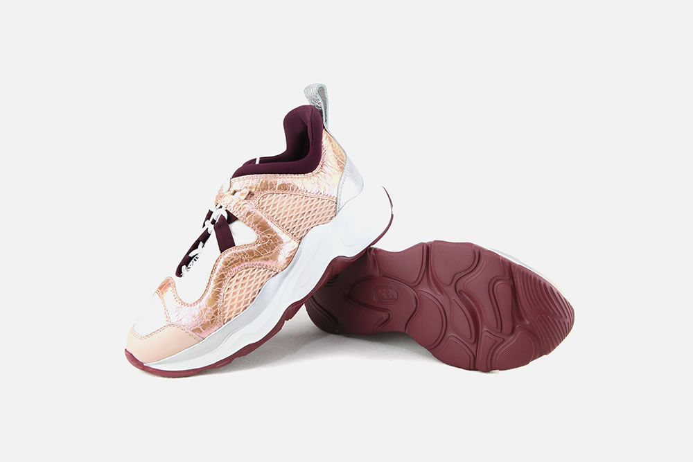 LAMAXI: des chaussures dont le volume évoque les sneakers du début des années 90. Un look extravagant aux couleurs vives et toniques, renforcé par une semelle oversize et l’utilisation de tissus techniques et inserts métalliques. Un joli clin d’œil aux nouvelles tendances.