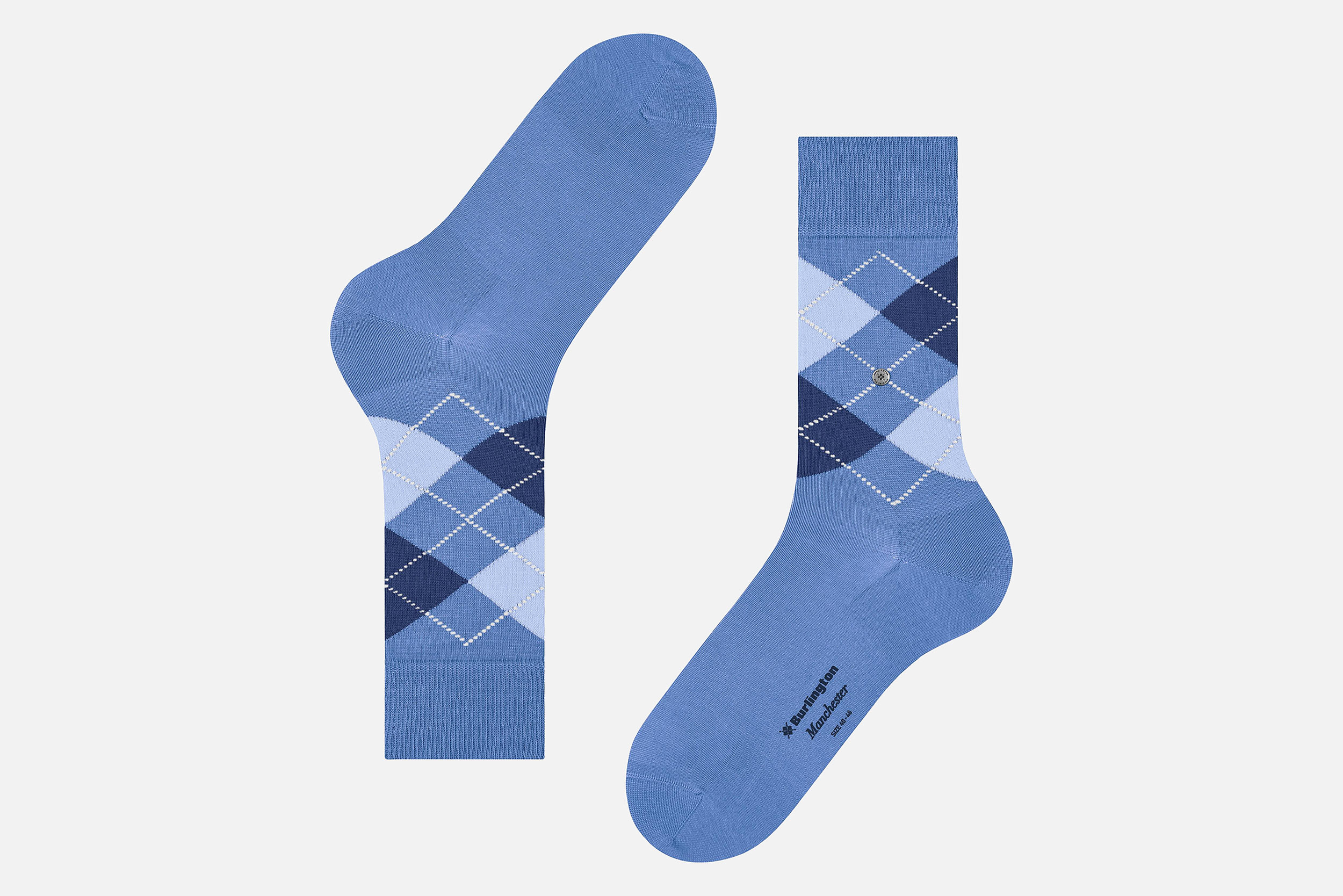 Burlington est célèbre pour ses chaussettes à losanges, directement inspirées du «tartan», emblème du clan Campbell, grande dynastie écossaise. Ce motif particulier se compose de fils noirs et blancs entrecroisés en suivant des lignes horizontales et verticales, afin de créer des carreaux sophistiqués. En les inclinant à 45°, ces carreaux se transforment en losanges, devenus depuis la marque de fabrique de Burlington.