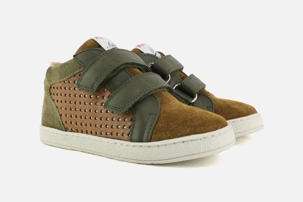 Chaussures hautes Pom d’Api kaki en daim – nubuck