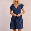 -Robe courte à multi-plis -Manches courtes -Décolleté en V -Taille haute marquée -Poches latérales -Fermeture par zip invisible dans le haut du dos -Longueur depuis l’épaule 90cm pour une taille S