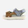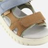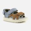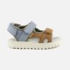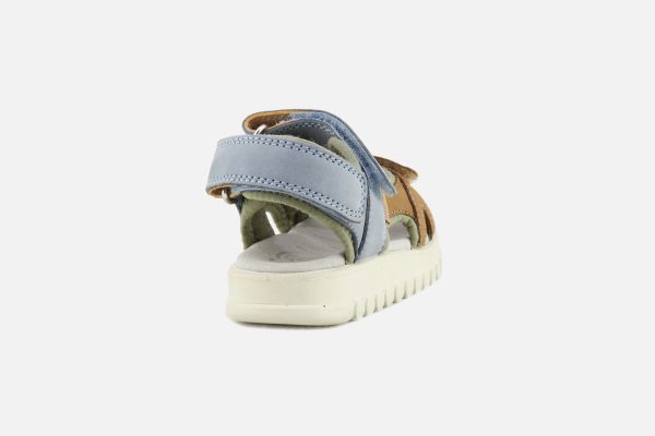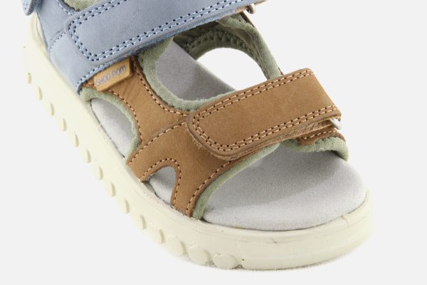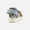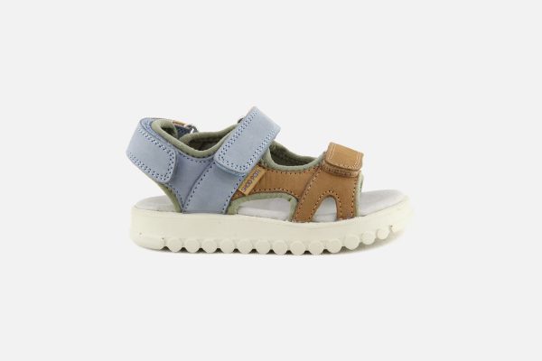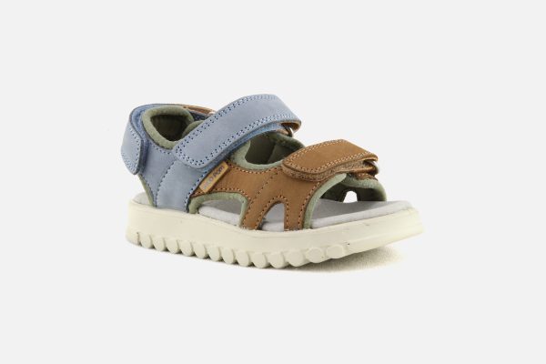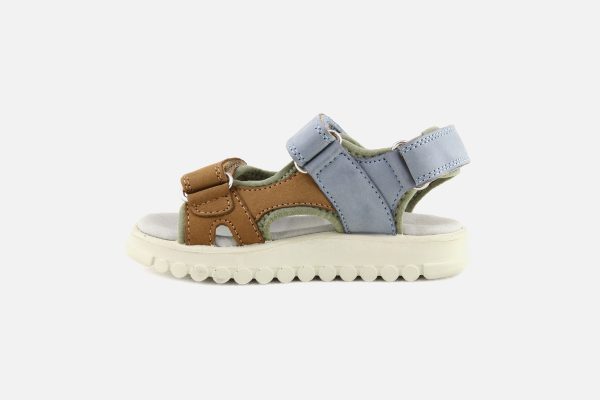 Cette sandale pour enfants est présentée dans une version en cuir nubuck camel, bleu et vert. Cette chaussure est conçue avec des matériaux de qualité pour le bon développement du pied. Elle se chausse et se déchausse facilement grâce à ses scratchs. Sa semelle intérieure possède une mousse permettant un confort optimal pour le pied.