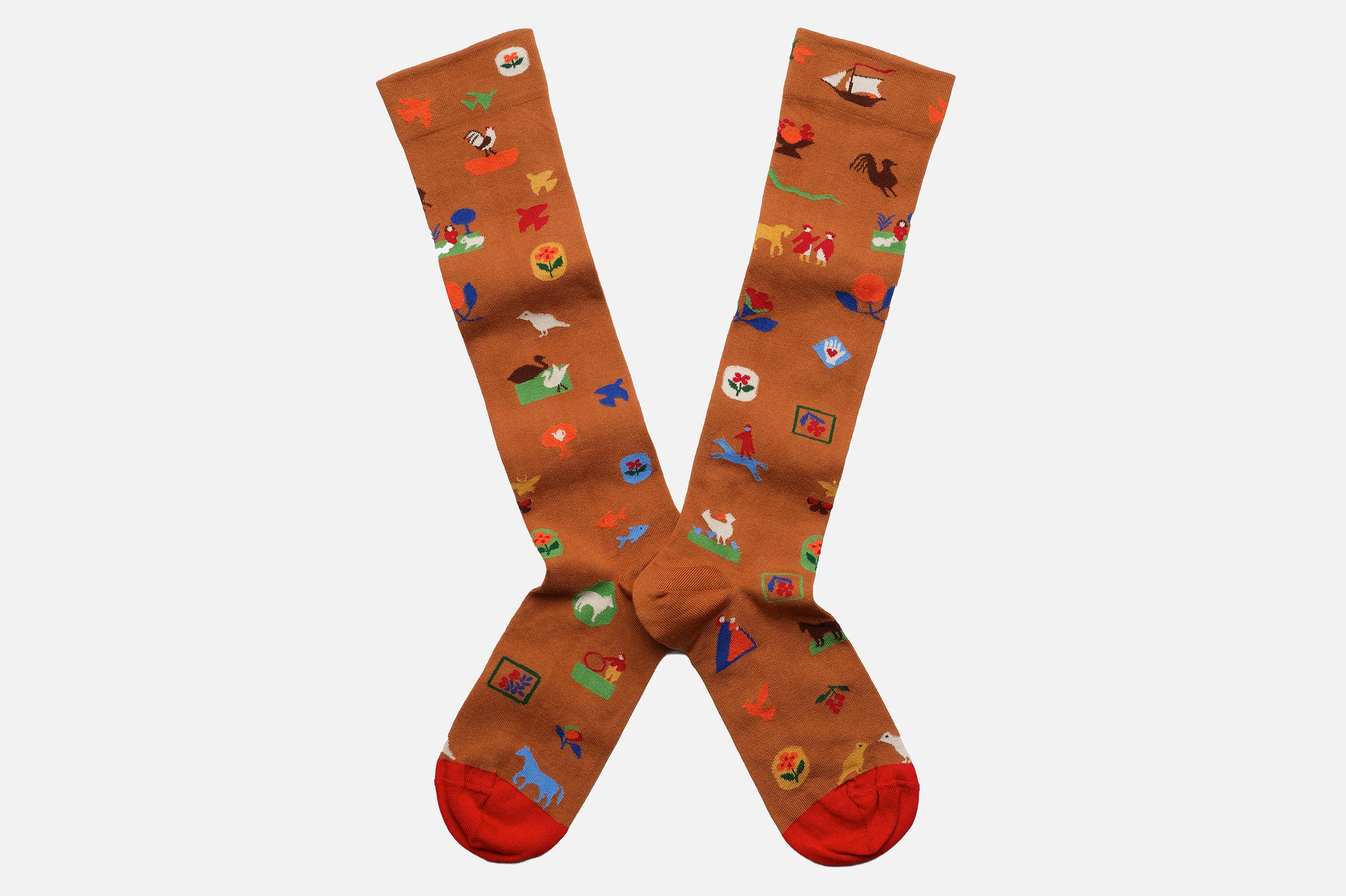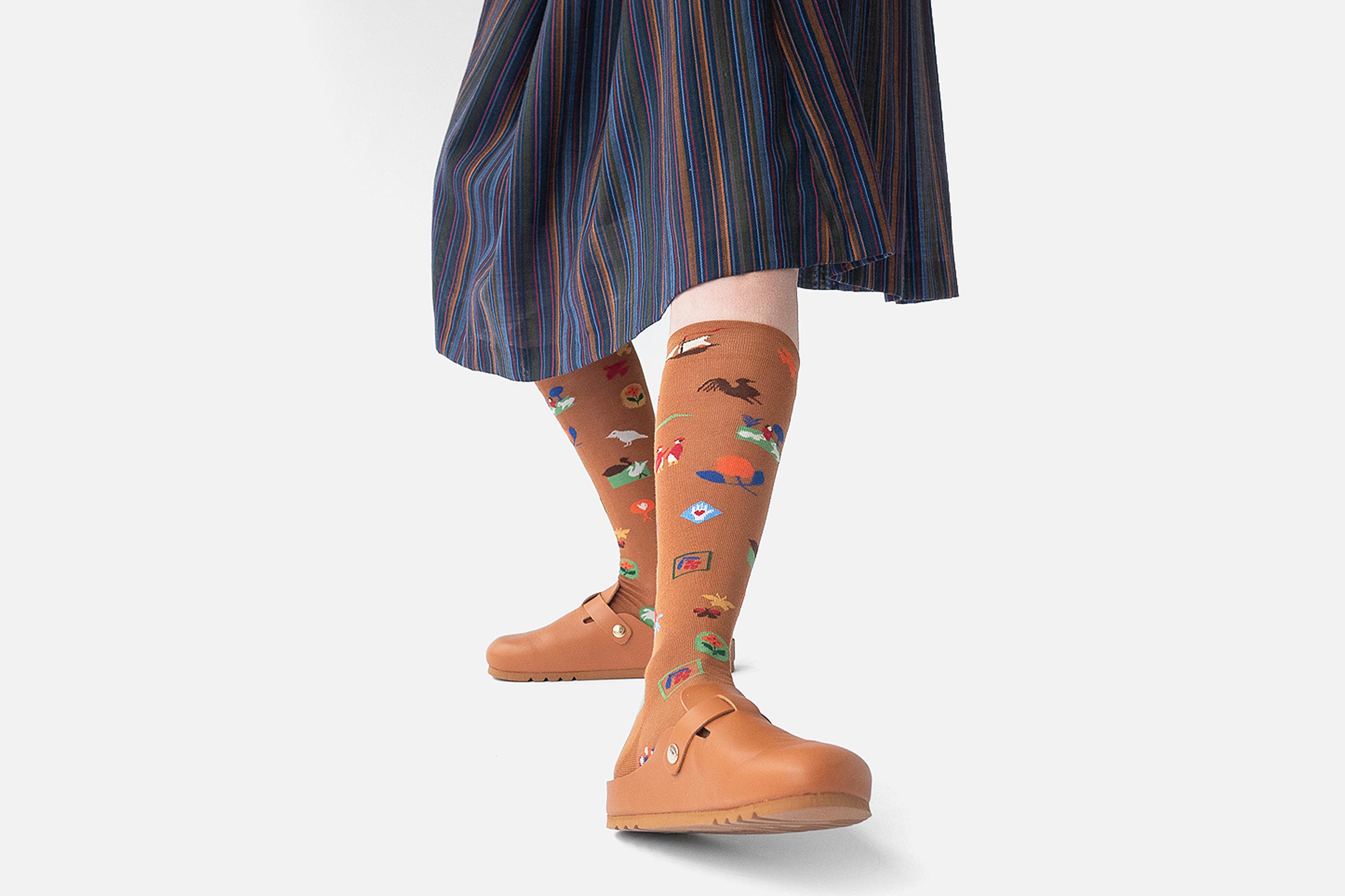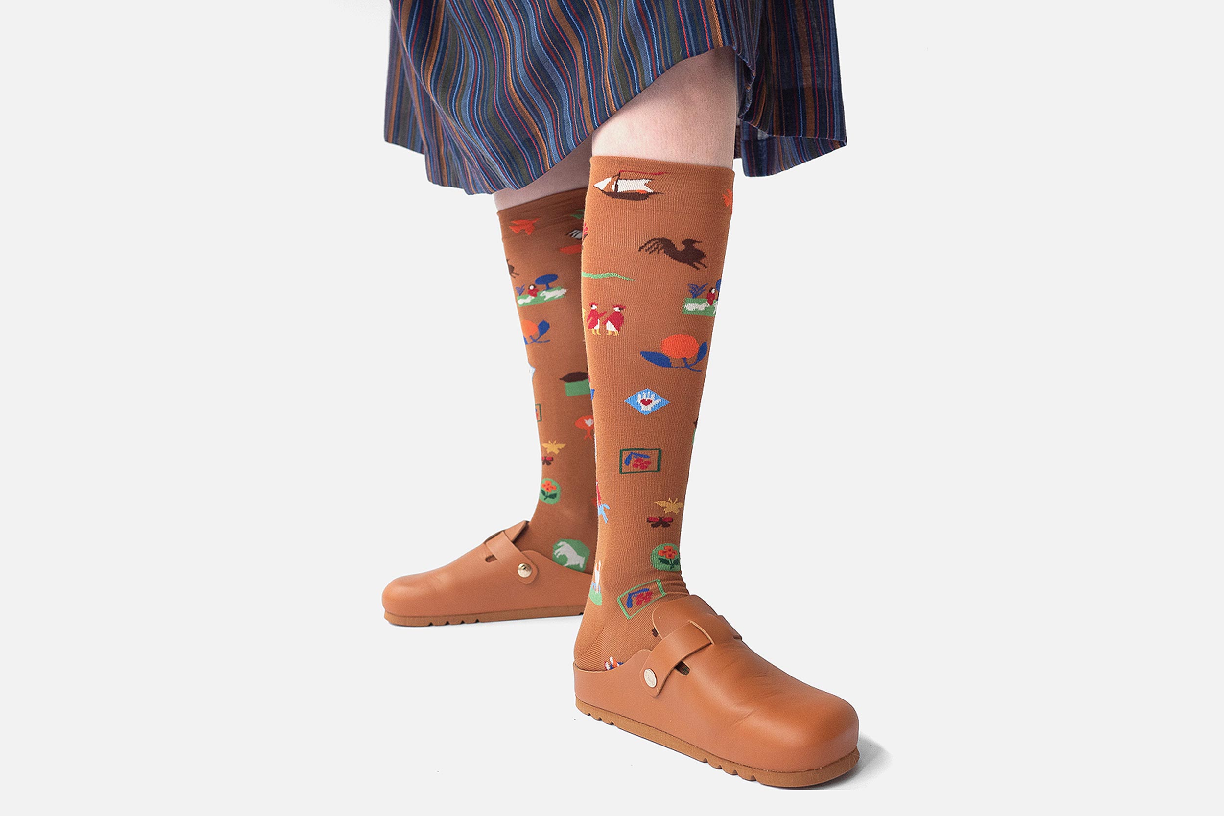 Chaussettes hautes Bonne Maison marron en coton