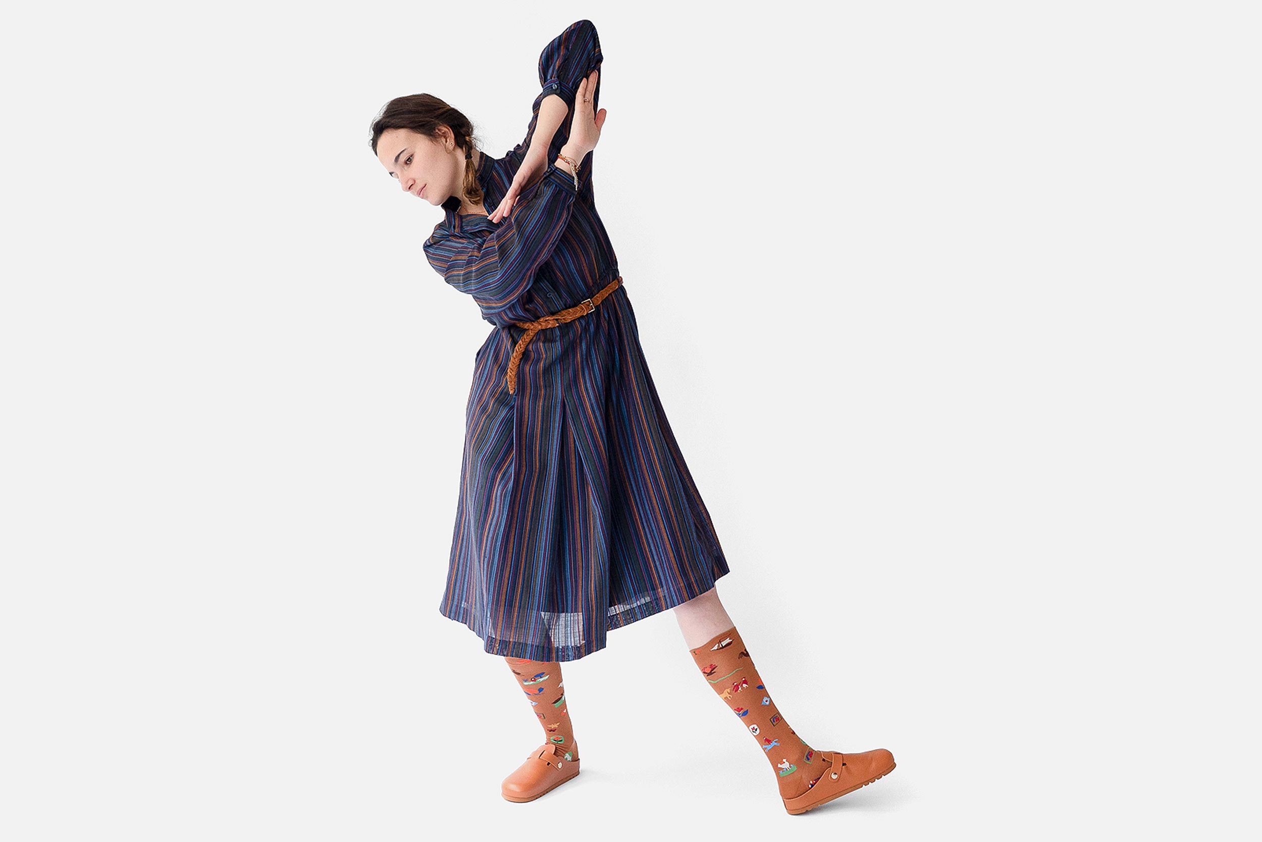 Nous sommes en 2012, Béatrice de Crécy, amoureuse de chaussettes japonaises aux illustrations subtiles et oniriques alors introuvables en France, fonde avec Jean-Gabriel Huez la marque Bonne Maison. Leur objectif : raconter des histoires, suciter le désir, offrir de petits moments de joie le temps d’enfiler ses chaussettes par exemple… Créations uniques Chaque saison sortent 3 lignes de chaussettes originales et artistiques, 3 histoires riches en couleurs et motifs exclusifs. On y croise des perssonage ou des animaux, dans des décors montagneux, verdoyants ou surréalistes, avec des pois, des rayures, sans oublier des fleurs : pivoines, œillets, iris, marguerites, coquelicots… Des chaussettes de qualité Ces chaussettes d’exception sont fabriquées avec un double fil de coton 100% égyptien, parfaitement arrondi et lisse. Une matière première de grande qualité, filée avec une technique particulière qui permet d’éliminer toute trace de fibrilles dans la matière, afin d’éviter le boulochage du coton pour le rendre lisse, doux, mat et solide. La finesse de cette maille permet également d’obtenir une grande précision dans les dessins. »
