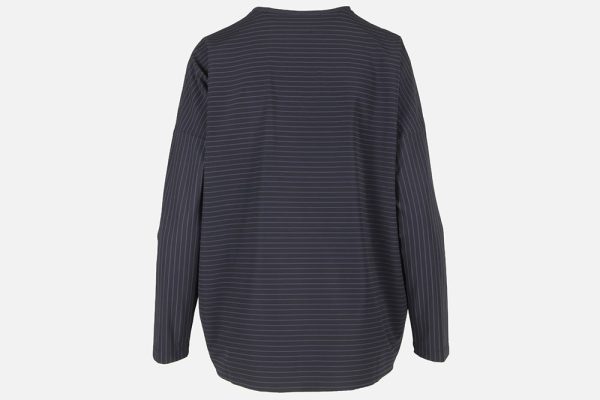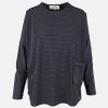 Top manches longues rayure bleue sur fond noir Poche avant cousue Encolure et poche motif pois