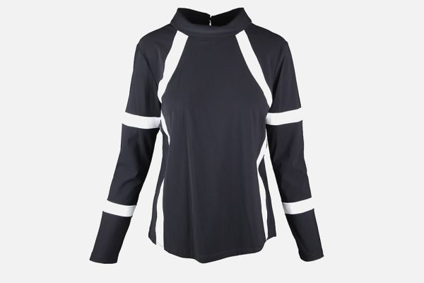 – Blouse noire avec motifs blancs sur le devant, l’arrière et les manches