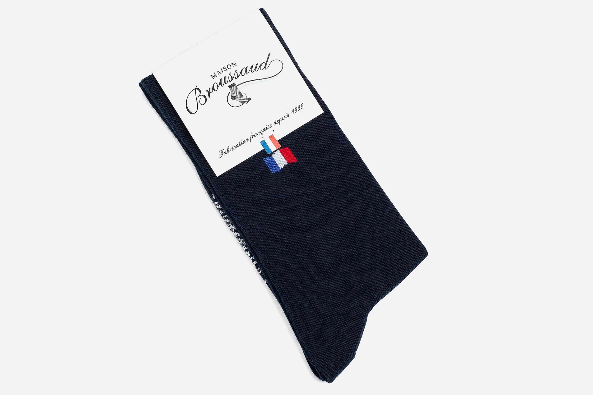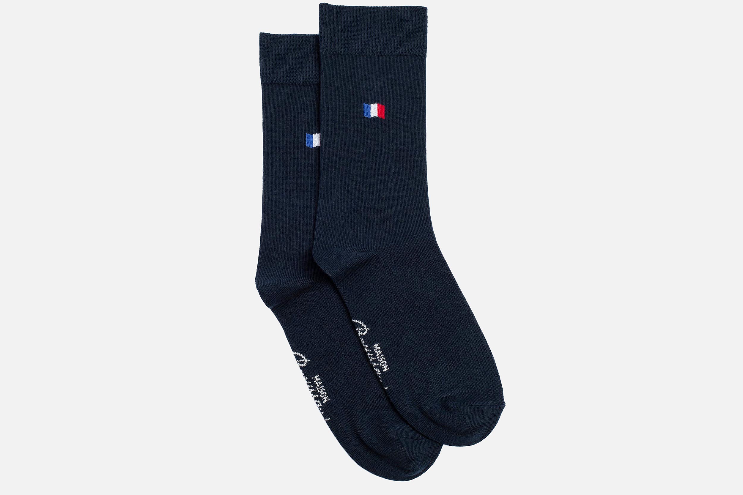 Faites le choix de l’élégance à la française avec la paire de chaussettes « Les drapeaux » de la Maison Broussaud.
